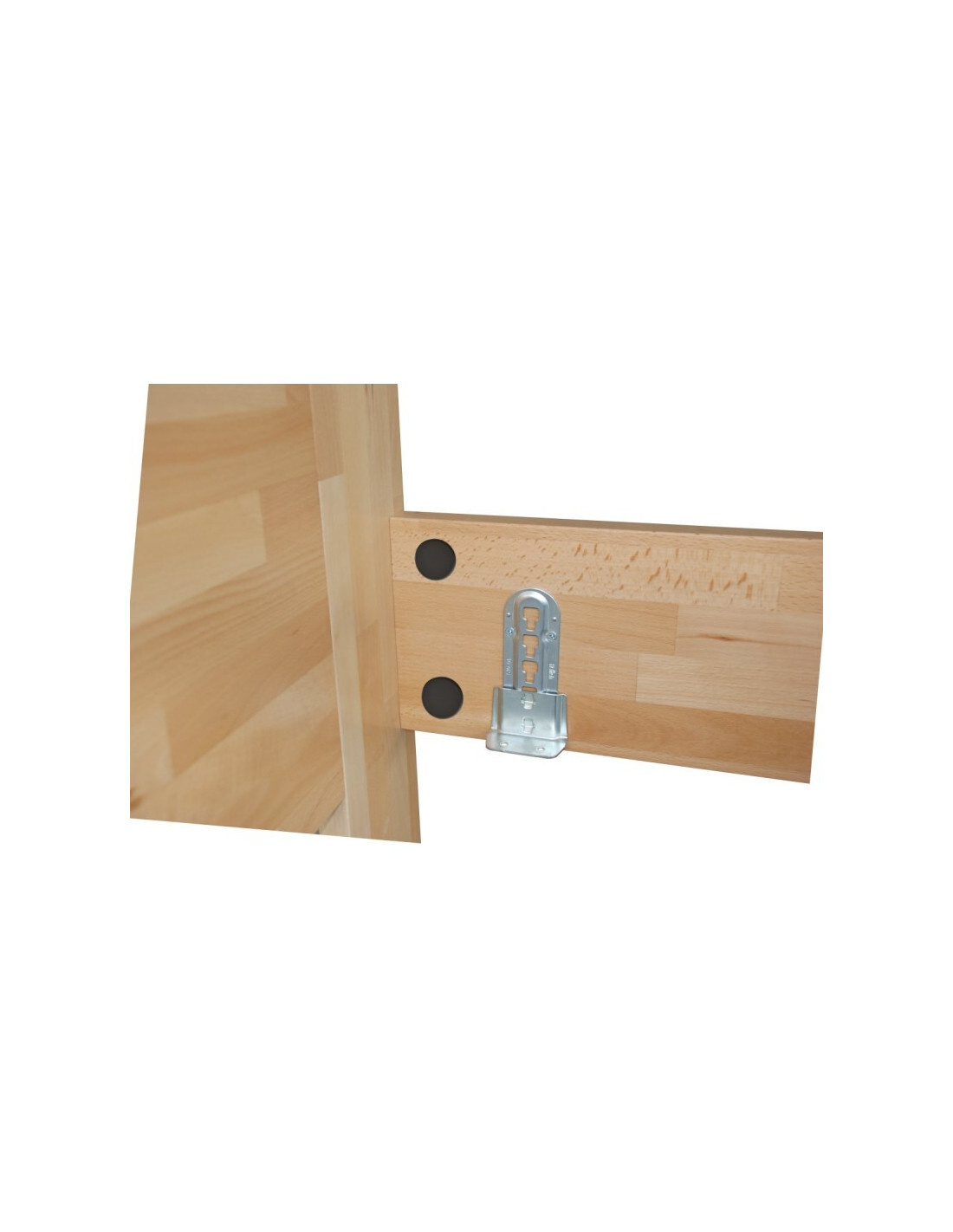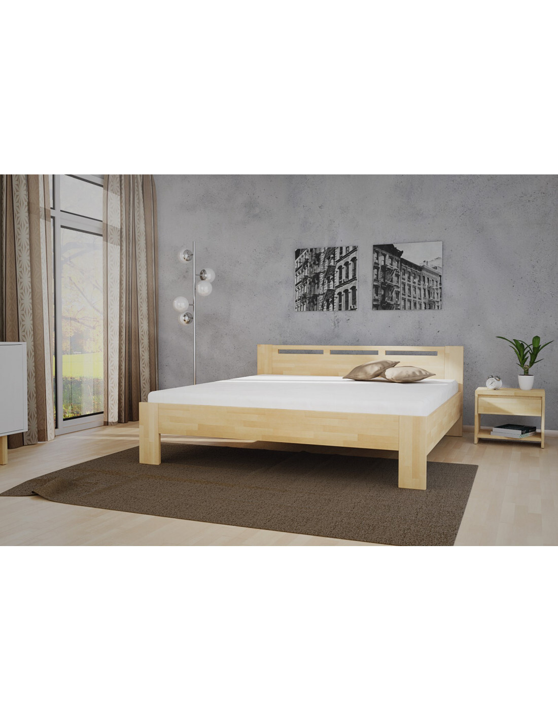 Postel Velia je vyrobena z masivního buku o tloušťce 30 mm v dezénu buk.. Stabilita je zajištěna excentrickým kováním 5 - bodové kování pro nastavení různé výšky. Povrchová úprava lak. Postel o rozměrech 140,160 a 180 dodáváme se středovou lištou, pro uložení 2 roštů. Postel je dodávána bez roštu a matrací. Výška bočnice od podlahy 45 cm. Výška předního/ zadního čela 45/95 cm. Zboží dodáváme v demontu.