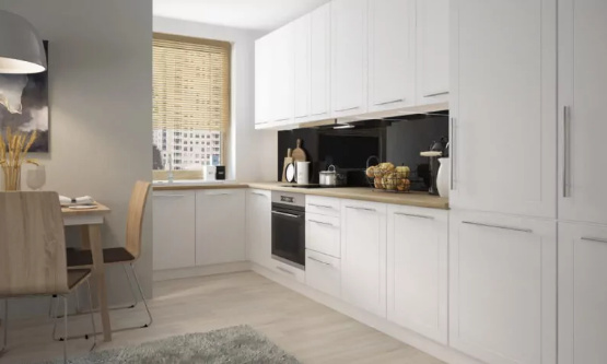 korpus WHITE - kvalitní závěsy GRASS HOPPER se systémem tichého dovíraní dvířek - tlumiče jsou integrovány v kování (tiché dovíraní se nevztahuje na rohové a zásuvkové skříňky - to lze přiobjednat)