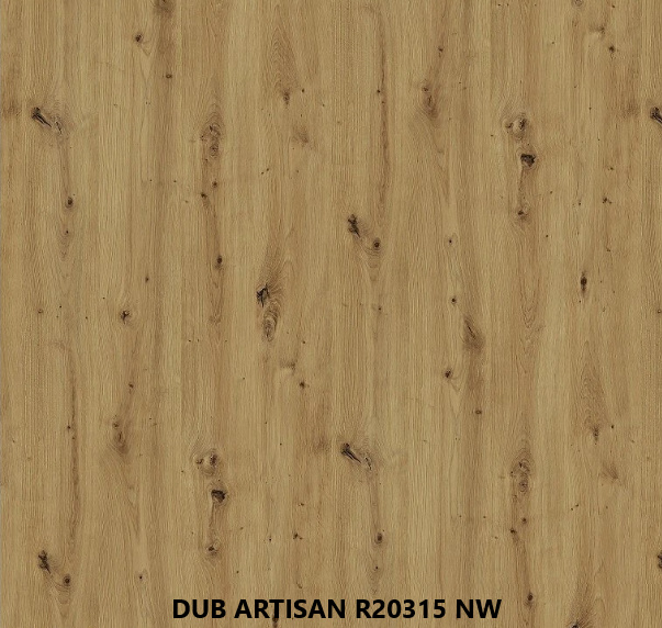 Tato pracovní deska je vyrobena z dřevotřískové desky s odolným laminátovým povrchem v dezénu dub artisan, tloušťka 38 mm. Cena za 1bm. Možnost objednání v různých rozměrech. ABS hrana na bocích desky v daném dezénu.