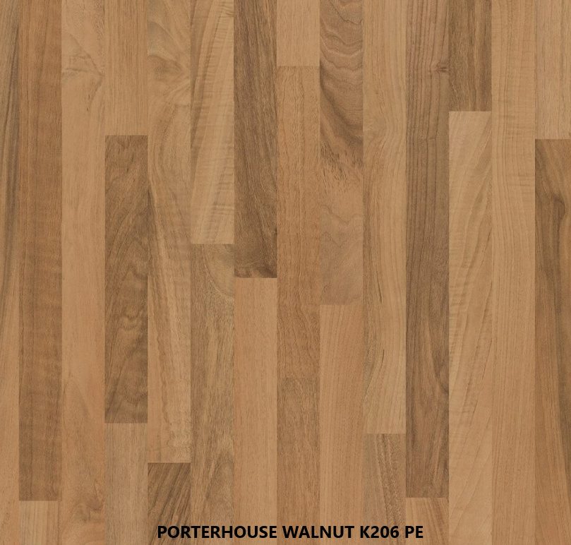 Tato pracovní deska je vyrobena z dřevotřískové desky s odolným laminátovým povrchem v dezénu porterhouse walnut, tloušťka 38 mm. Cena za 1bm. Možnost objednání v různých rozměrech. ABS hrana na bocích desky v daném dezénu.