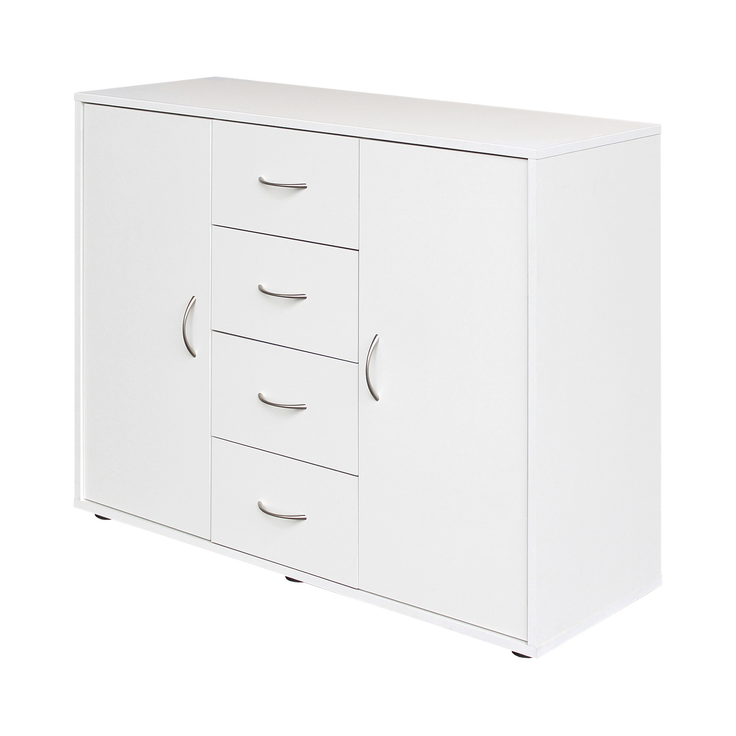 Prádelník 1507 je vyroben z kvalitního lamina v bílé barvě. Po stranách má dvoje dvířka, za každými je jedna variabilní police. Uprostřed se nachází čtyři zásuvky o hloubce 30 cm. Zboží je dodáváno v demontu.