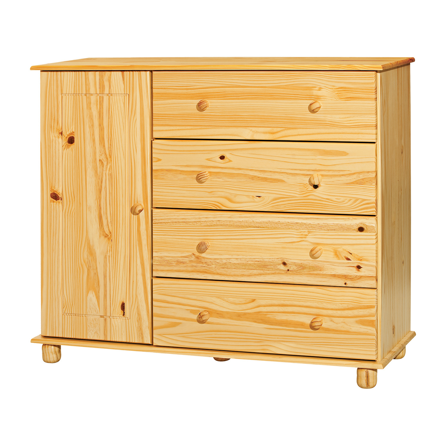 Prádelník 8016 z masivu borovice v lakovaném provedení je přehledně rozdělen na skříňku s dvířky, v té se nachází jedna variabilní police, a čtyři zásuvky s kovovými pojezdy a hloubkou 33,5 cm. Kvalitní prádelník s hezkým dezénem dřeva bude skvělou volbou do ložnice i šatny, jejichž prostory jsou vybaveny masivním nábytkem. Do prádelníku uložíte spodní prádlo, trička i doplňky, které vám zabírají důležité místo ve vaší skříni. Zboží je dodáváno v demontu.