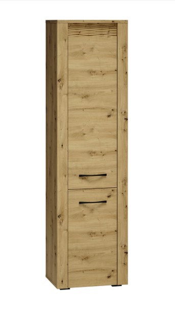 Modernita inspirovaná přírodou, to je pečlivě navržená kolekce nábytku ARTIS. Přirozený vzor dřeva, krásná zrnitost a výrazné suky zdůrazňují charakter nábytku. V kombinaci s jednoduchým stylem vytváří nábytek, který ozdobí jakýkoli interiér. Černé kovové úchytky dokonale kontrastují s dekorem teplého dubu a osvětlená dekorativní drážka dodá vašemu interiéru záři a jedinečnou atmosféru. Kolekce je vyrobena z lamina nejvyšší kvality, odolného proti poškrábání, vlhkosti a vysokým teplotám, v dezénu dub artisan, dekorativní drážka je z MDF. Na nábytku jsou použity hrany ABS, které jsou trvanlivé, odolné proti nárazu a vlhkosti a neodlepují se. Zboží je dodáváno v demontu.