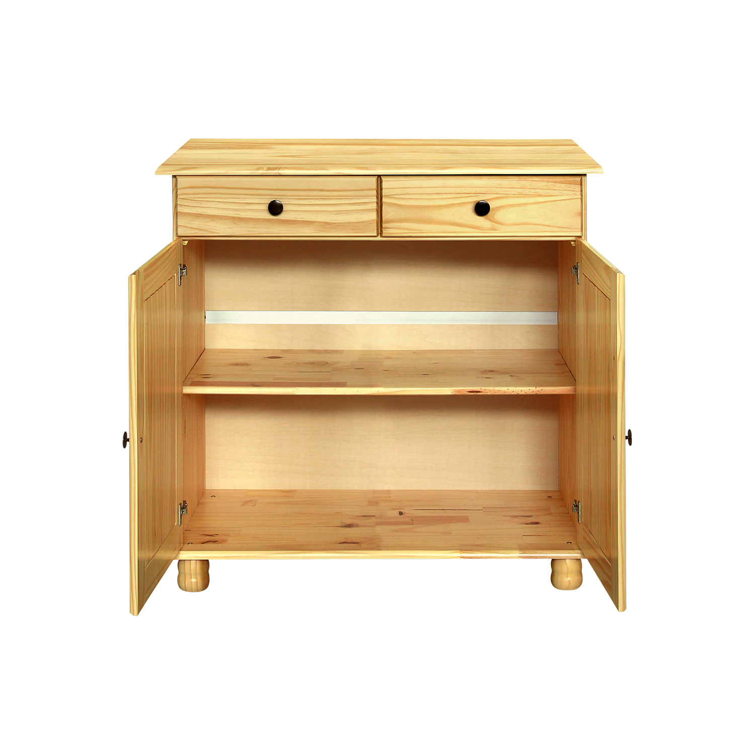 materiál masiv borovice, lakované provedení 2 dveře, 2 zásuvky s kovovými pojezdy, 1 police