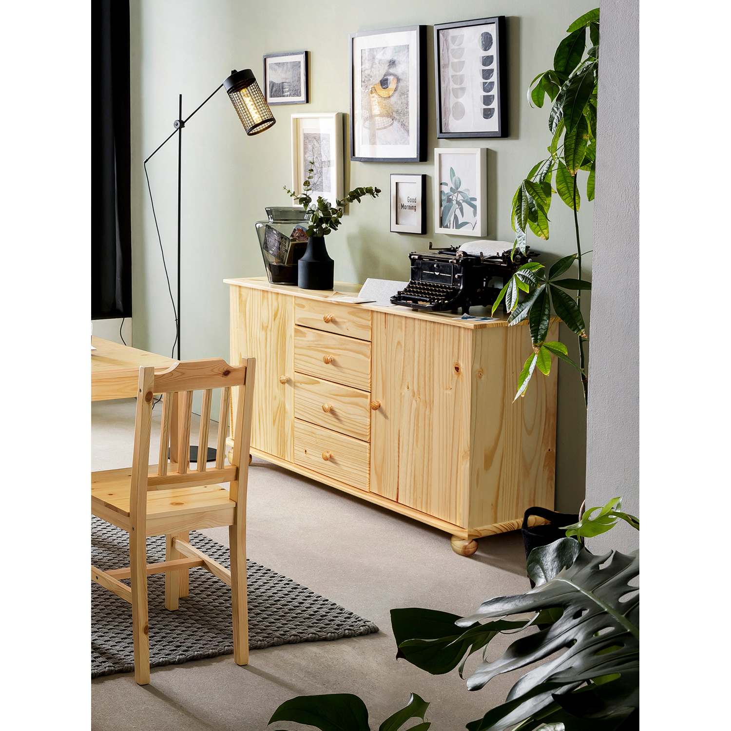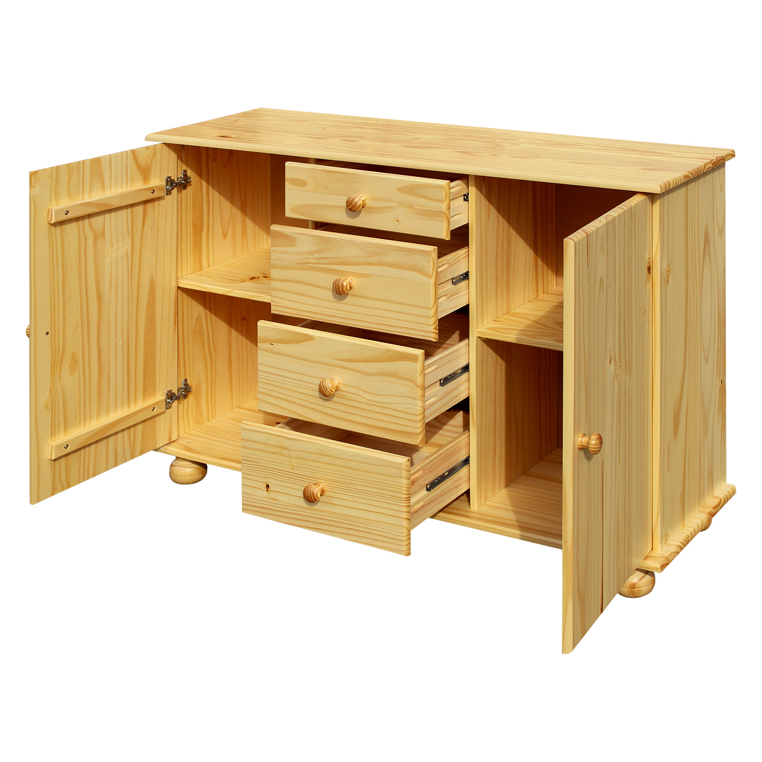 Příborníky se vrací opět do módy a předně vám poskytnou velkorysý úložný prostor k umístění nejrůznějších věcí. Příborník 8045 v provedení masiv borovice obsahuje čtyři zásuvky s kovovými pojezdy a dvě skříňky s dvířky vybavené policí. Do příborníku uložíte jak nejrůznější nádobí, tak hrnce, plechy, příbory a kuchyňské náčiní. Na příborník však lze umístit i nástavec 8046. Zboží je dodáváno v demontu.