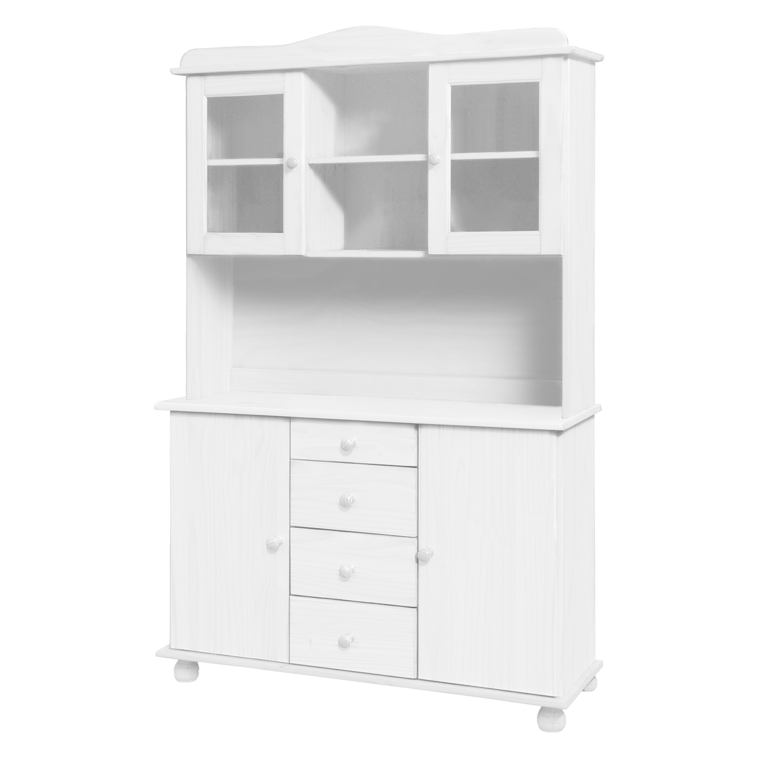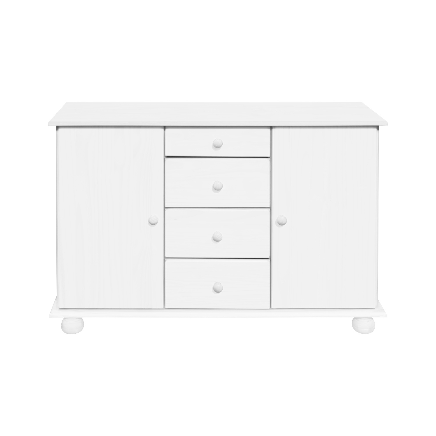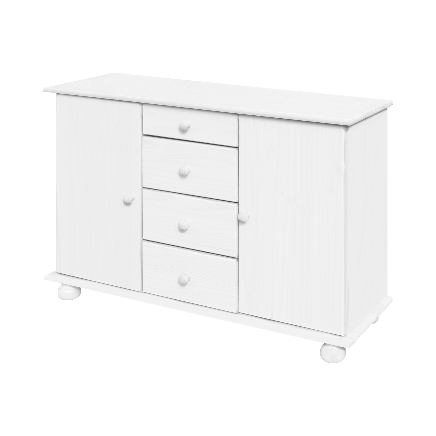 materiál masiv borovice, barevné provedení bílý lak 4 zásuvky s kovovými pojezdy, 2 skříňky s dvířky vybavené policí vhodný doplněk nástavec 8046B