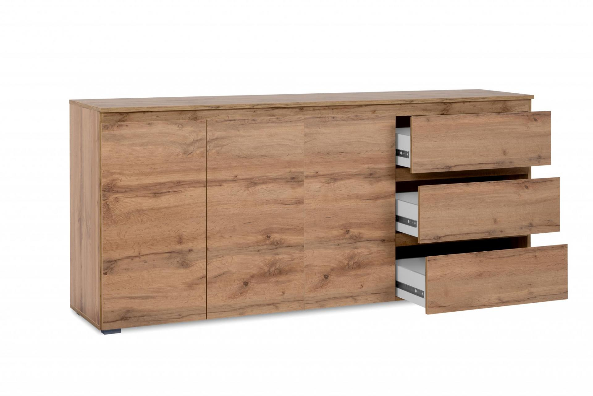 barevné provedení zlatý dub tři zásuvky s kovovými pojezdy 3 dvířka, 1 variabilní police