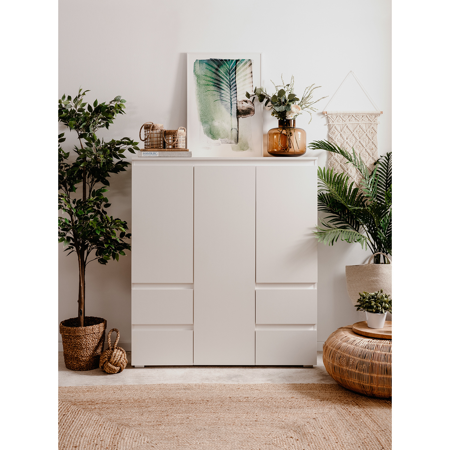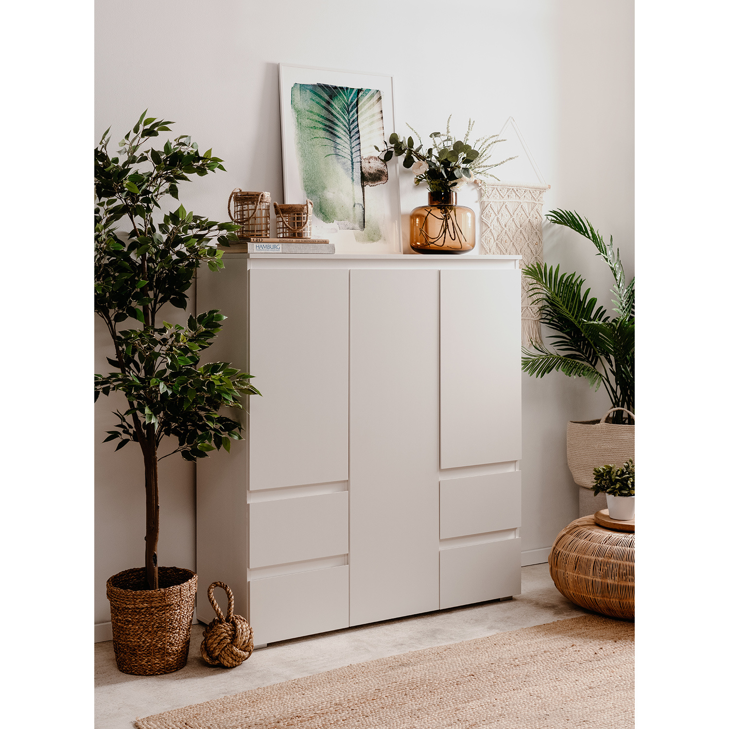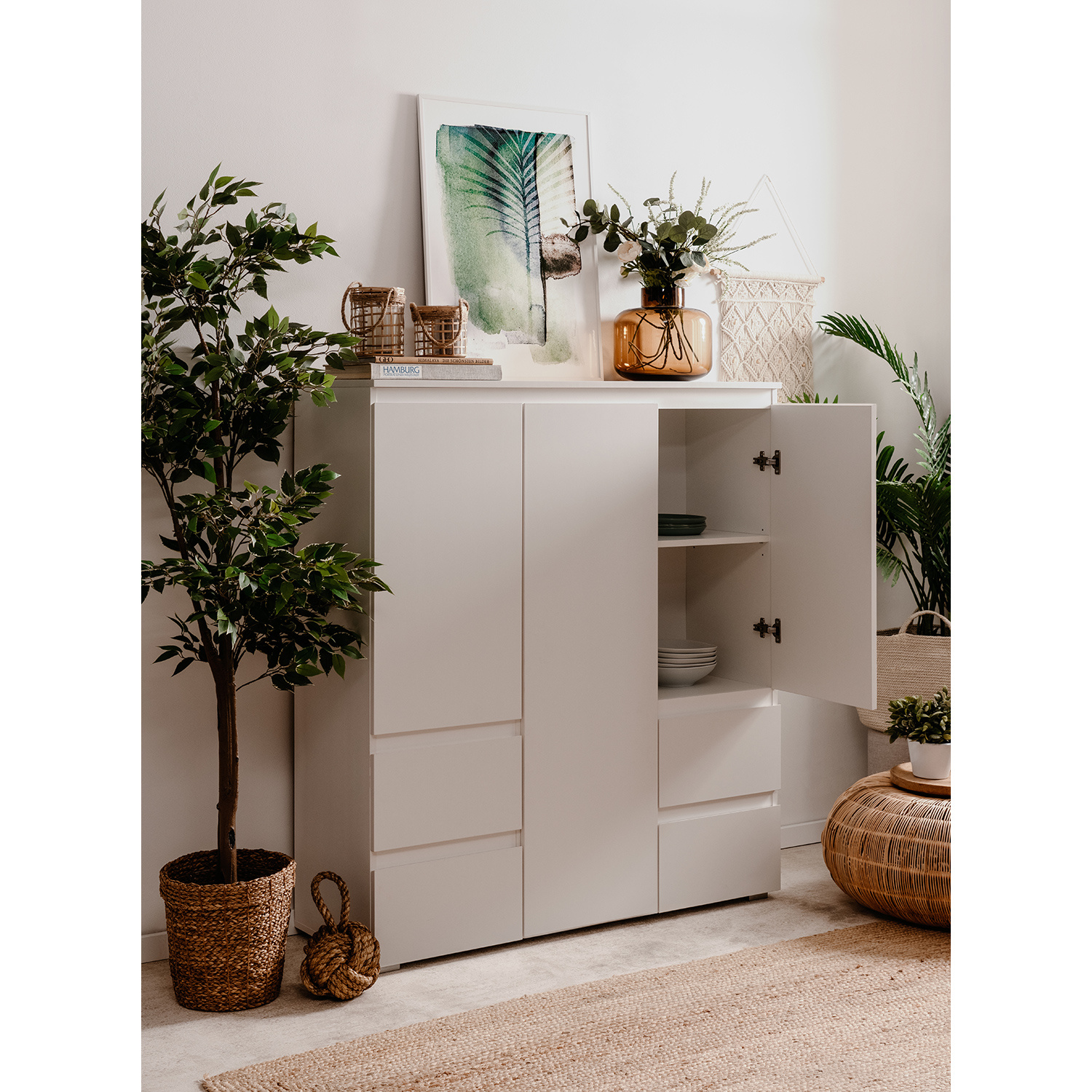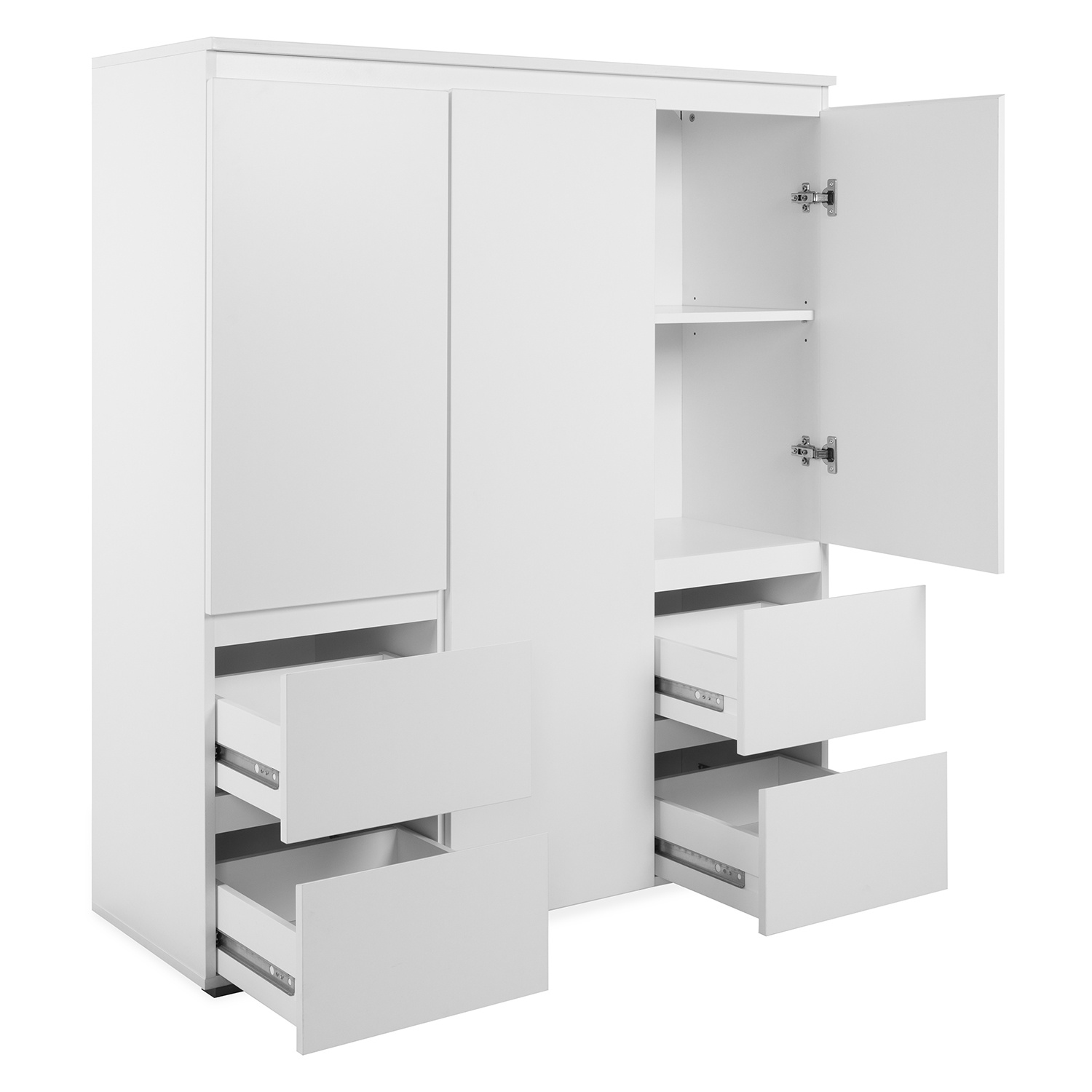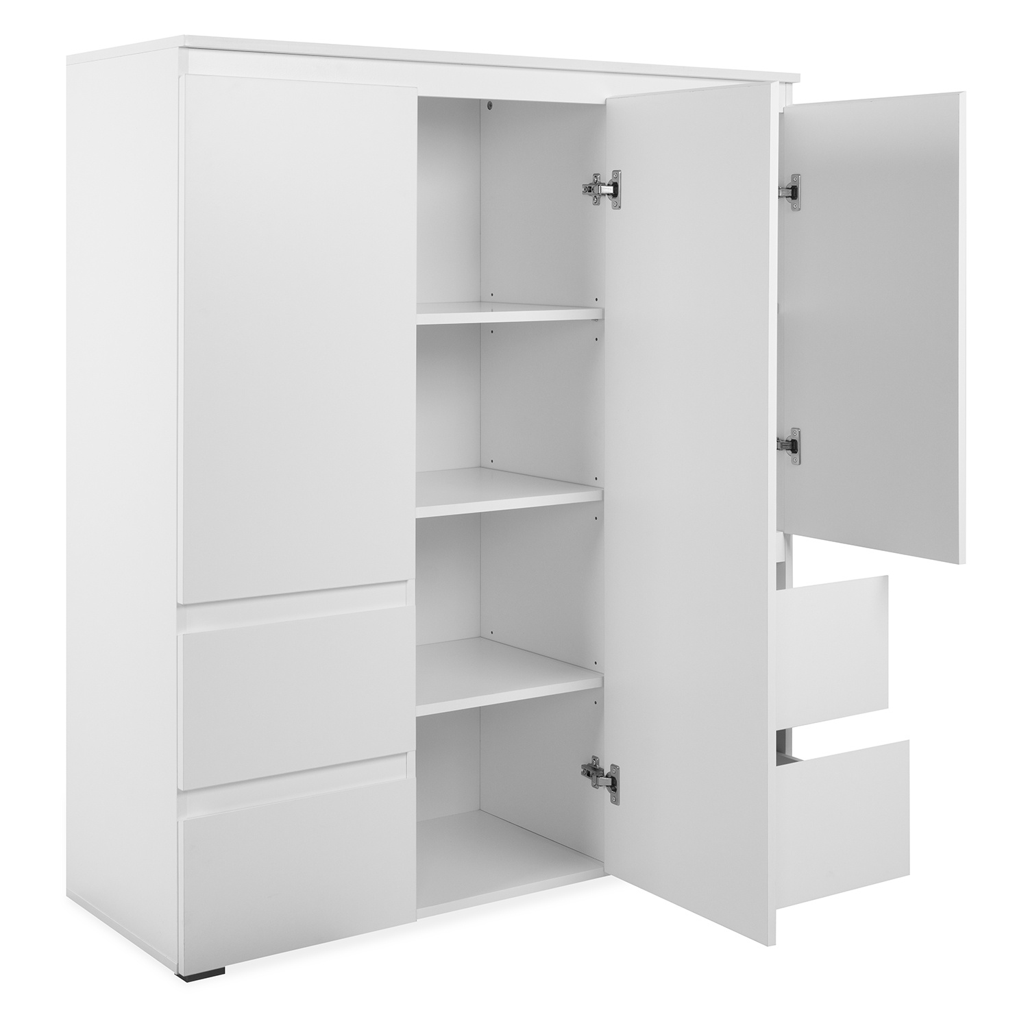 barevné provedení bílá 3 dveře, 5 variabilních polic 4 zásuvky s kovovými pojezdy