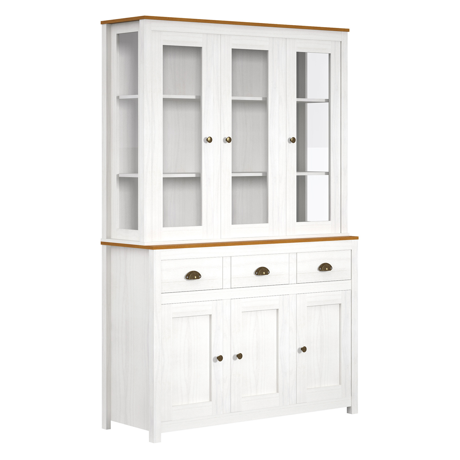 Velký příborník z masivu borovice v matném provedení bílý/hnědý lak obsahuje tři zásuvky s kovovými úchytkami i pojezdy a dva úložné prostory vybavené policemi. V horní části příborníku se nachází prosklená dvířka, takže krásně vystavíte nádobí a hrnky, zásuvky uprostřed pak pojmou příbory, a prostor za plnými dvířky uschová hrnce a plechy. Nechte se inspirovat a zařiďte si domácnost kvalitním masivním nábytkem TOPAZIO. Zboží je dodáváno v demontu.