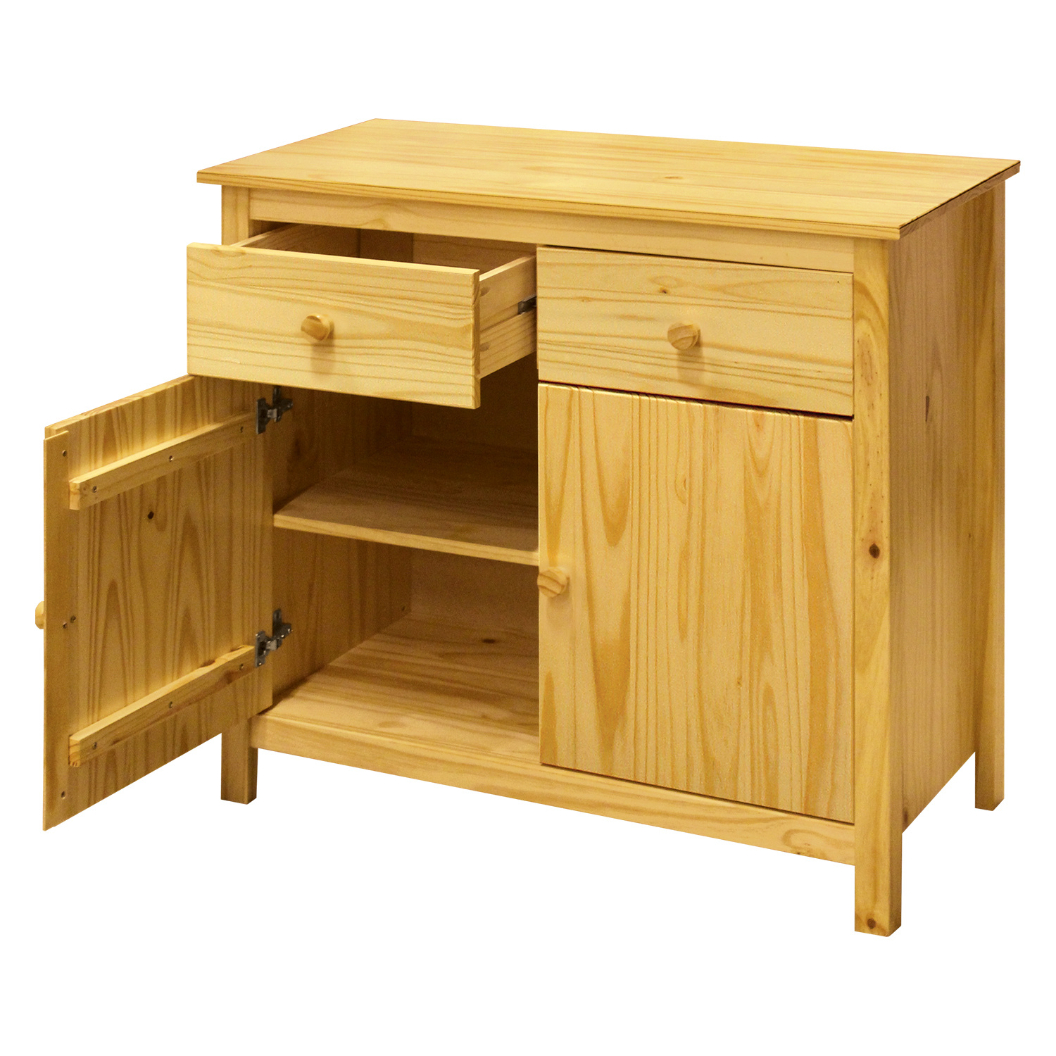 Příborník TORINO z masivu borovice v lakovaném provedení najde své uplatnění jak ve vaší kuchyni, tak na chalupě či chatě. Příborník má dvě zásuvky s kovovými pojezdy a úložný prostor s policí opatřený dvířky, schová tak všechny pomůcky k pečení, smažení i vaření. Tento nízký příborník však lze doplnit i o nástavec TORINO. Zboží je dodáváno v demontu.