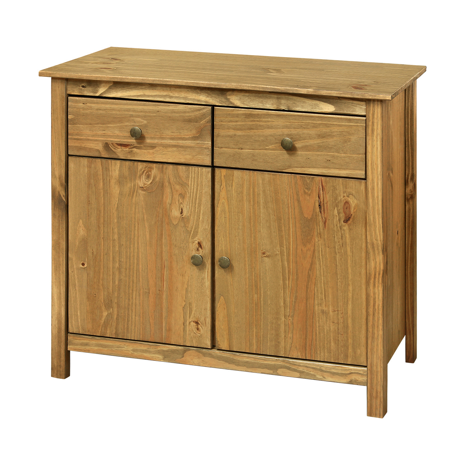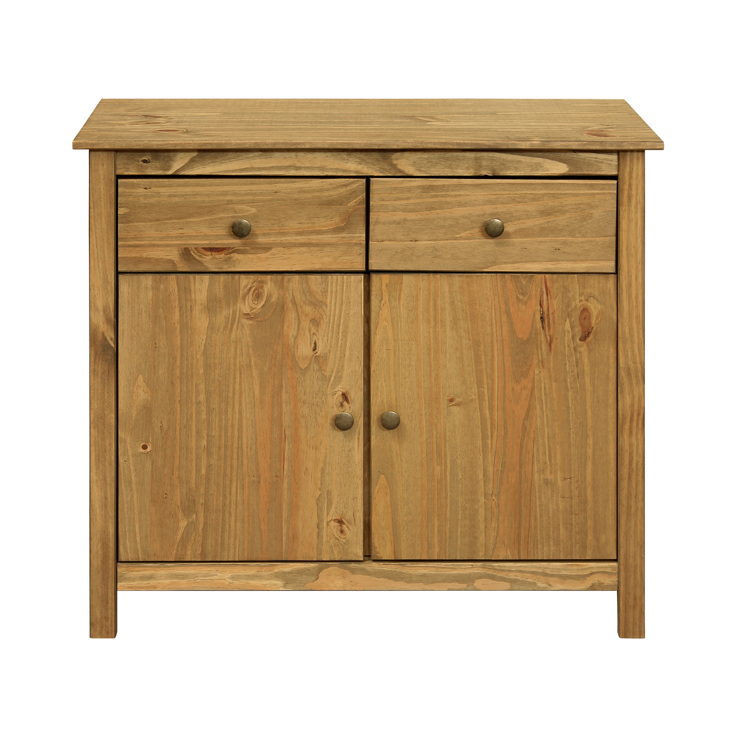materiál masiv borovice voskovaná v medovém odstínu, kovové úchytky 2 zásuvky s kovovými pojezdy, 2 plné dveře, 1 police
