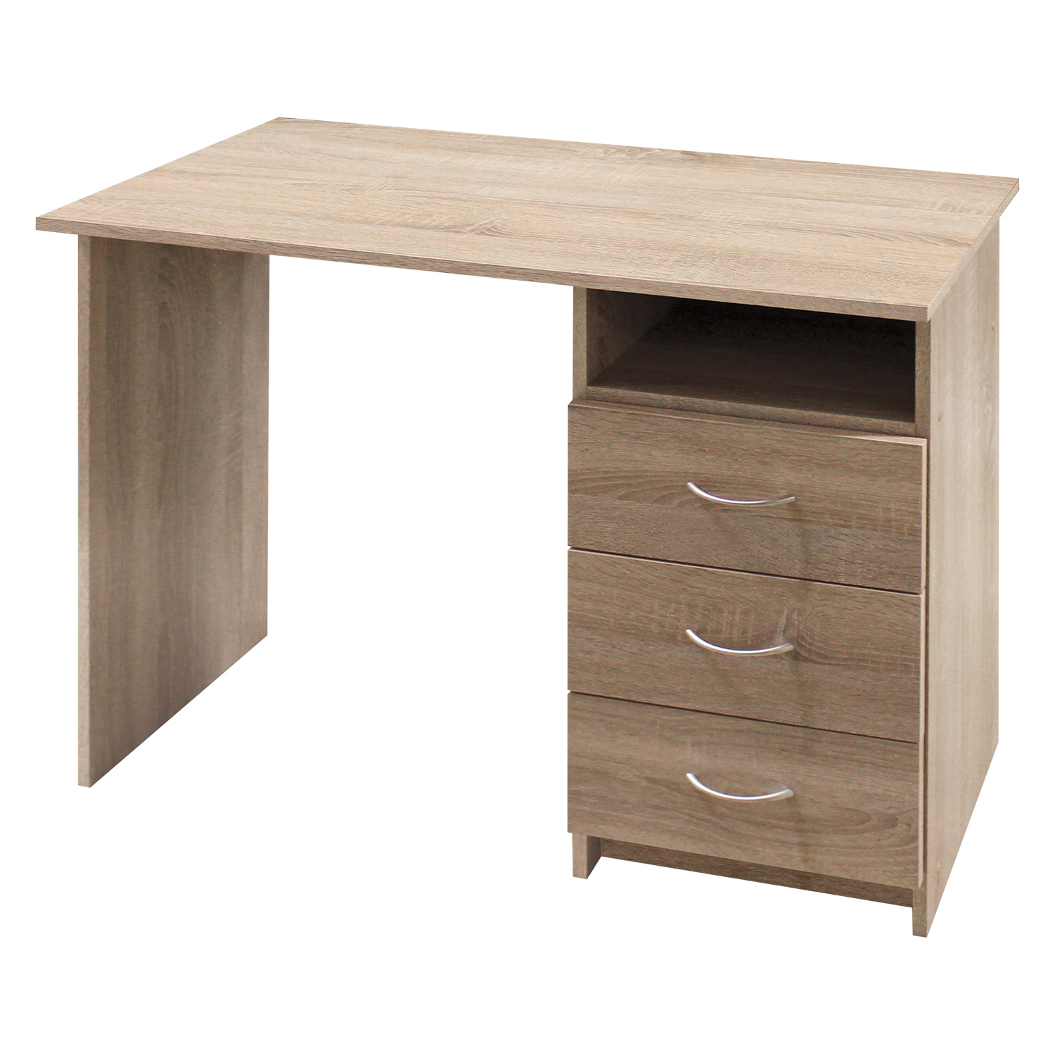 Praktický psací stůl je vyroben z laminované dřevotřísky v barevném provedení dub Sonoma. Obsahuje 3 zásuvky, montáž možná pouze na pravou stranu. Na desku stolu se snadno vejde notebook i obrovský hrnek kávy. Zboží dodáváme v demontu.