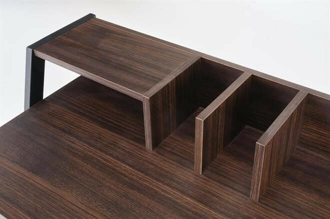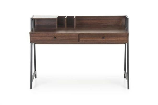 Psací stůl má desku z dýhované nábytkové desky s melaminem v barevné kombinaci ořech a nohy z práškově malované oceli v černé barvě. Zboží dodáváme v demontu.