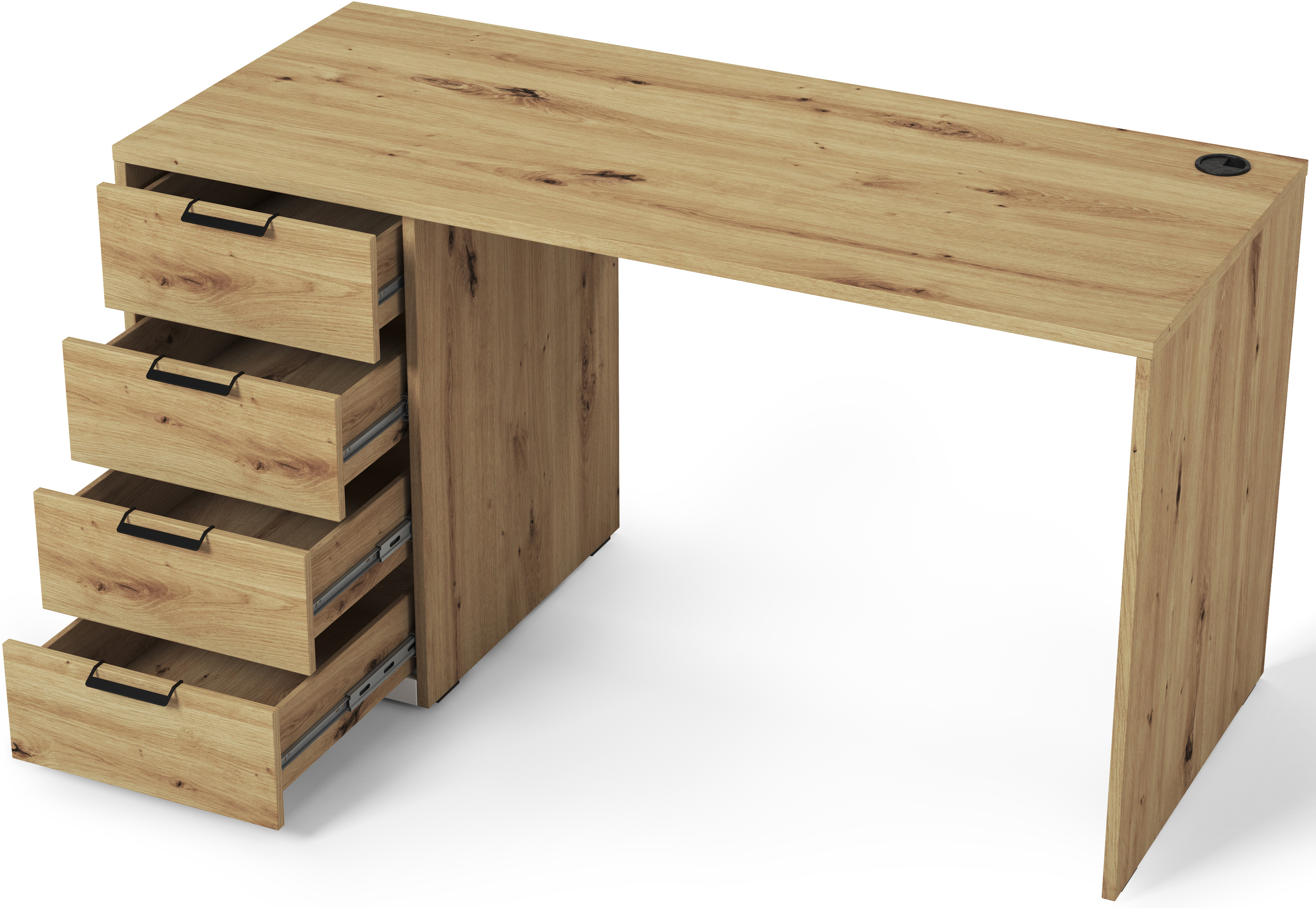 Psací stůl Barold v provedení dub artisan je vyroben z laminované dřevotřísky o tl. 16mm. Nožky o výšce 0,5 cm jsou plastové. Nosnost jednoho šuplíku 3 kg. Zboží dodáváme v demontu.