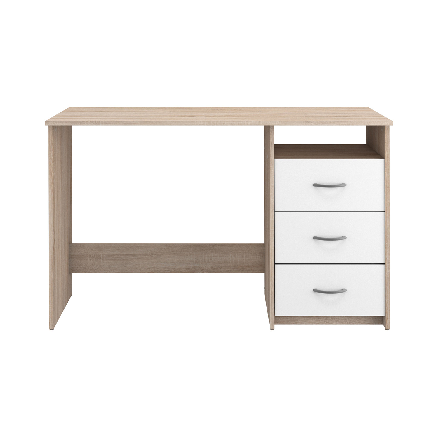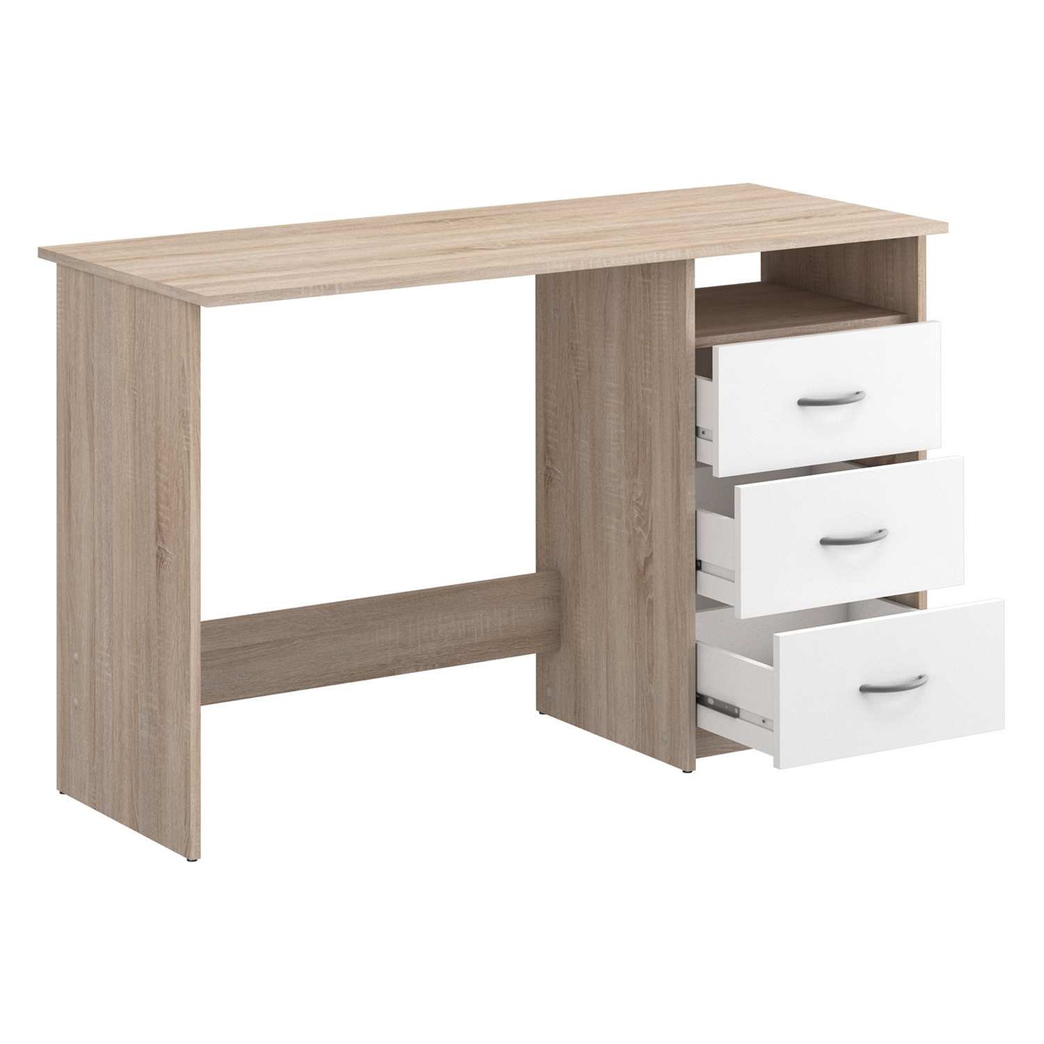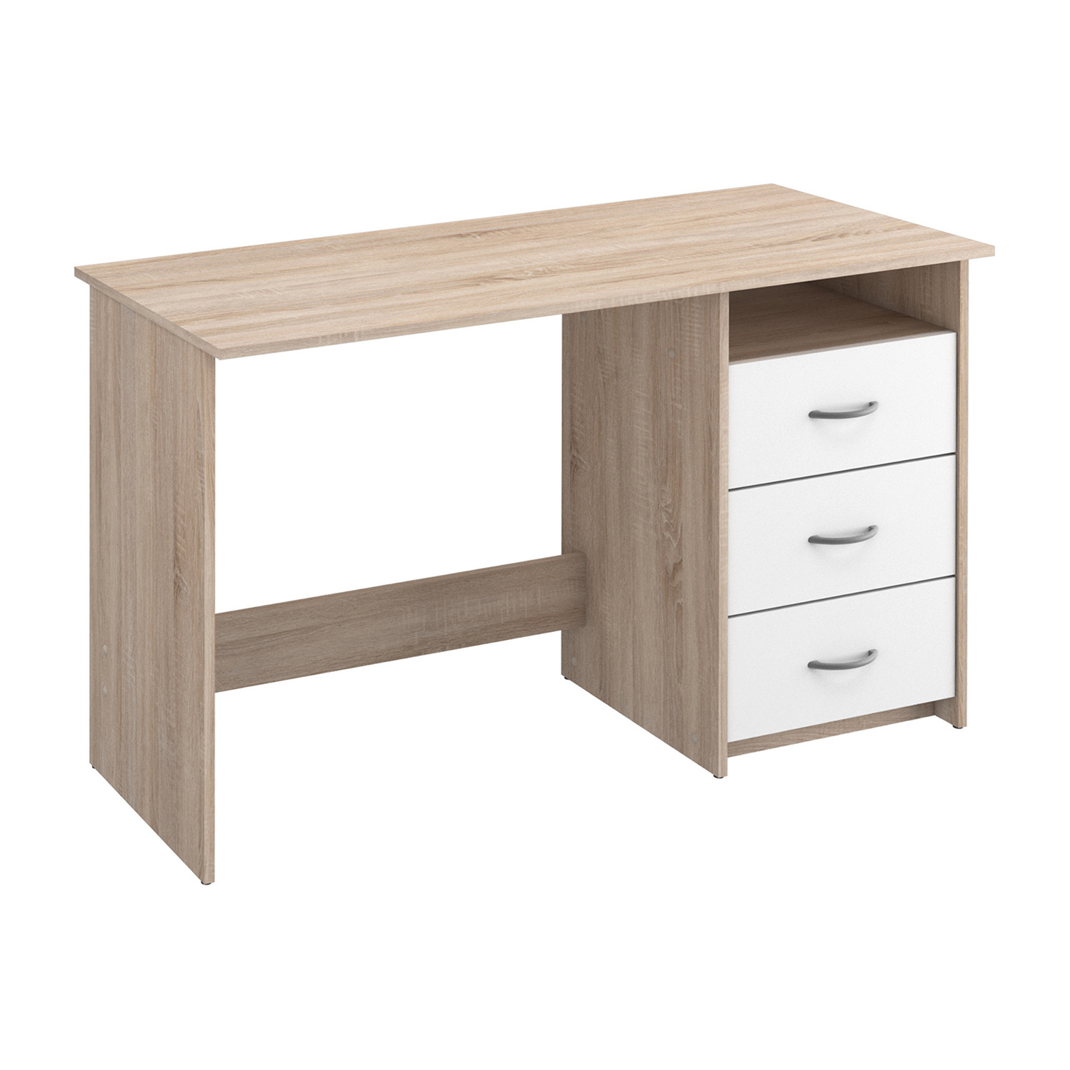 Praktický psací stůl je vhodný na zařízení dětských a studentských pokojů. Stůl je vyroben z lamina v barevném provedení dub/perleť bílá. Má 1 polici (š/h/v) 40x38x13 a 3 zásuvky s kovovými pojezdy. Zásuvky se mohou připevnit na pravou i levou stranu. Kvalitní pracovní stůl je prostě nepostradatelný pro vaše budoucí školáky. Zboží dodáváme v demontu.