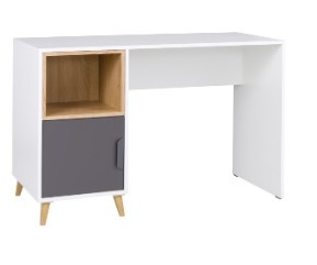 Moderní psací stůl JOKER 14 je vyroben z kvalitního lamina DTD o síle 16 mm, hrany jsou začištěny ABS hranou, pojezdy jsou kovové. Stůl má matnou povrchovou úpravu v barevném provedení bílá/šedá/dub lefkas. Sektorový nábytek JOKER tvoří 15 prvků, které můžete libovolně kombinovat. Díky čemu si můžete sestavit pokoj podle svých představ. Zboží dodáváme v demontu.