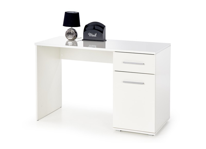Psací stůl LIMA je vyroben z kvalitního lamina v dezénu bílá / bílý lesk, ABS hrana. Tento psací stůl má 1 zásuvku a 1 skříňku s dvířky. Úchytky jsou v barvě chrom. Je vhodný do studentského pokoje, pracovny anebo kanceláře. Díky praktickým rozměrům se stane spolehlivým pomocníkem při práci nebo studiu. Zboží je dodáváno v demontu.