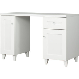 Psací stůl s dvěma dvířky a jednou zásuvkou v bílé barvě. Zboží je dodáváno v demontu.