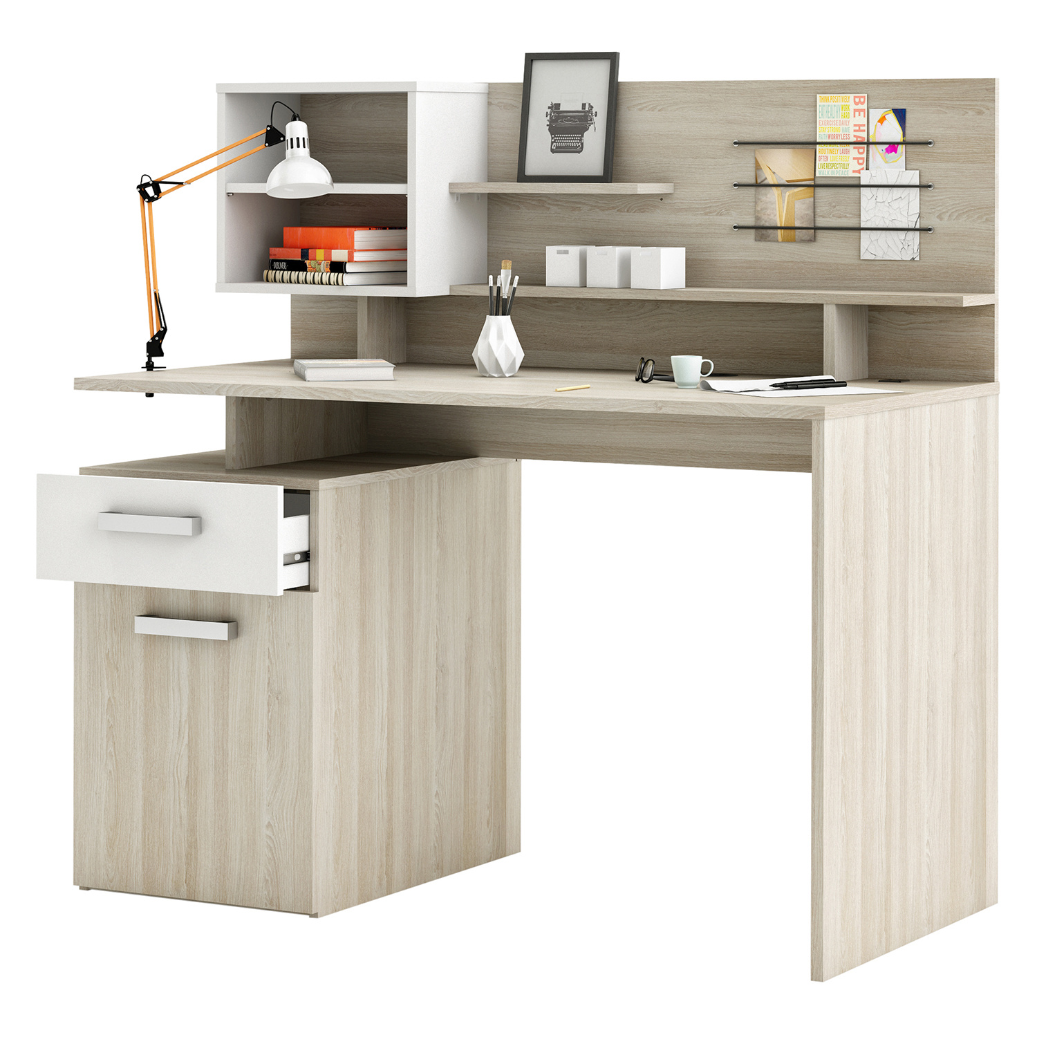 Psací stůl MALICIA dub shannon/perleťově bílá