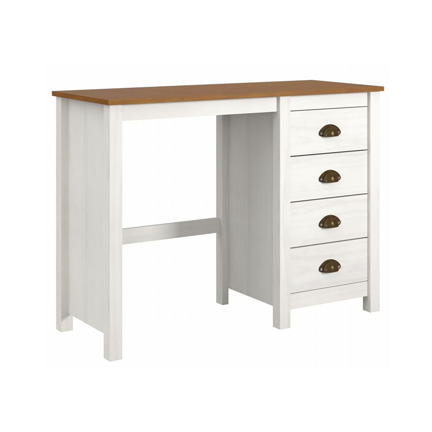 Psací stůl TOPAZIO v provedení masiv borovice se stane dominantou vašeho pracovního koutu. Psací stůl v matném provedení bílý/hnědý lak bude vyhovovat všem pracujícím i studentům. Stůl má velkou pracovní plochu, takže na ni umístíte jak notebook, tak vystavíte kancelářské potřeby, čtyři zásuvky s kovovými úchytkami a pojezdy pak poslouží k uložení doplňků. Masivní psací stůl TOPAZIO se bude nejlépe hodit právě do prostoru, který je zařízený masivním nábytkem TOPAZIO. Zboží dodáváme v demontu.