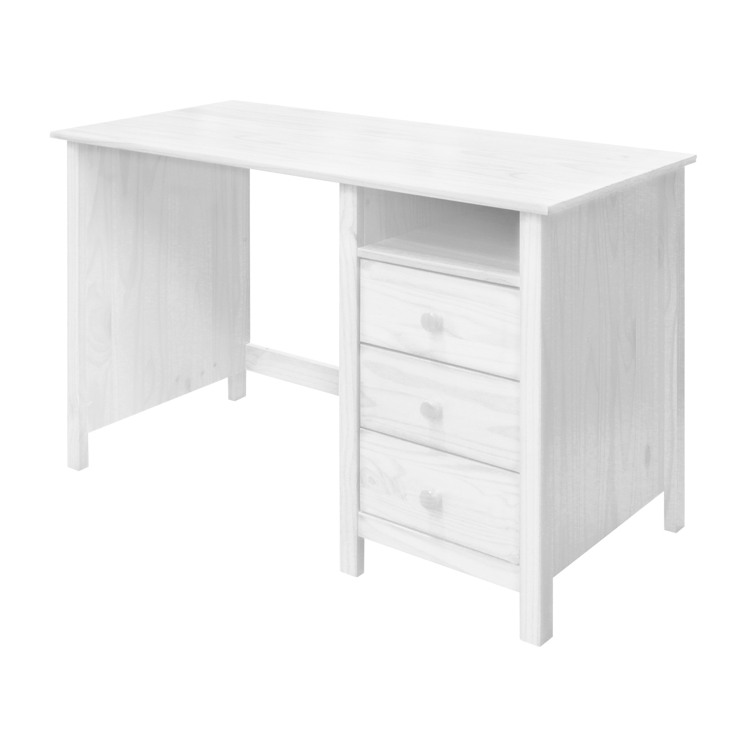 materiál masiv borovice, barevné provedení bílý lak 3 zásuvky s kovovými pojezdy, 1 police