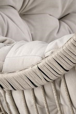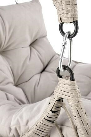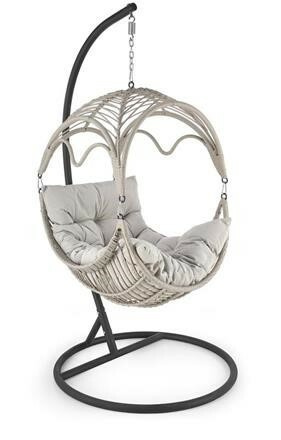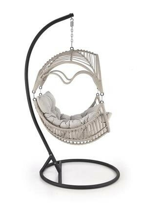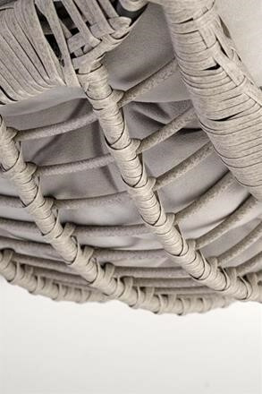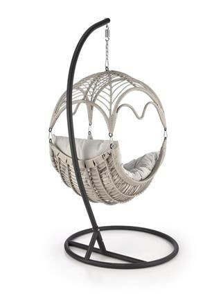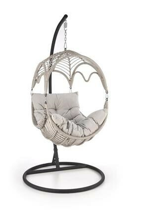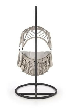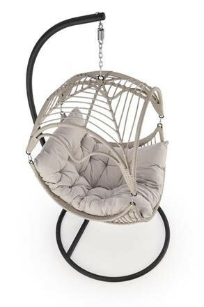 Závěsné křeslo má konstrukci vyrobenou z lakované ocele, která je potažená odolným umělým ratanem v šedé barvě. Uvnitř vajíčka se nachází silný, měkký polštář v šedé barvě. Součástí křesla je ocelový stojan v černé barvě.