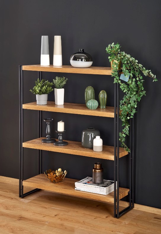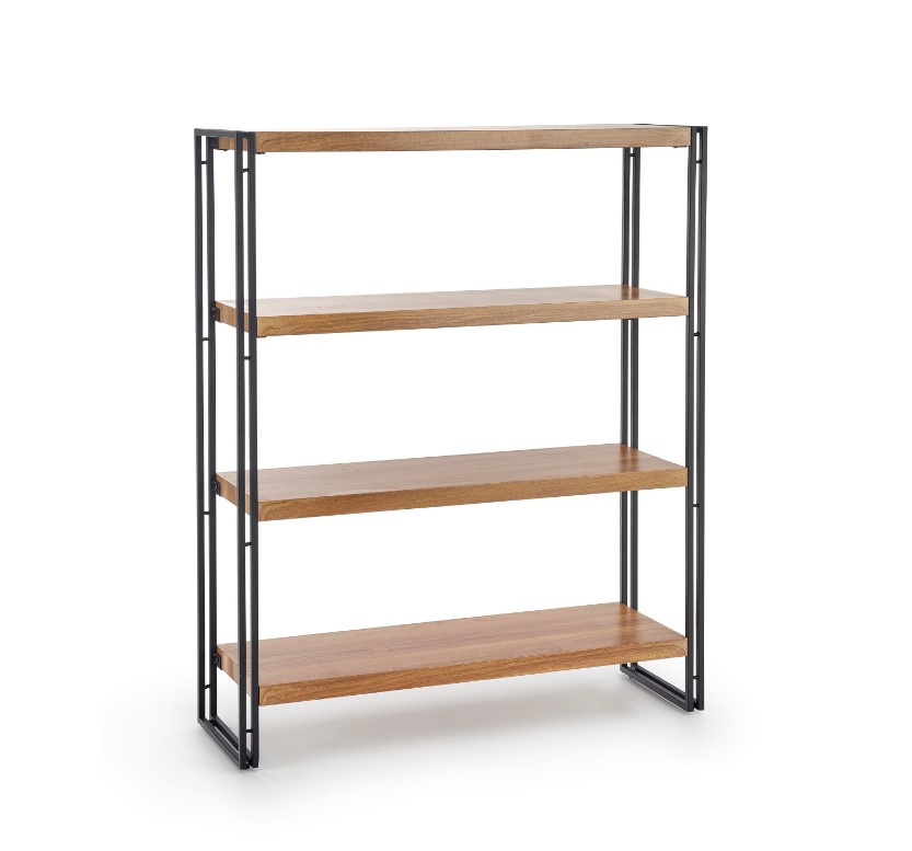 Tento regál je vhodným doplňkem jídelní sestavy Bolivar. Má čtyři odkládací police. Je vyroben v kombinaci MDF dýhované v barvě zlatý dub a oceli práškované v černé barvě. Zboží je dodáváno v demontu.