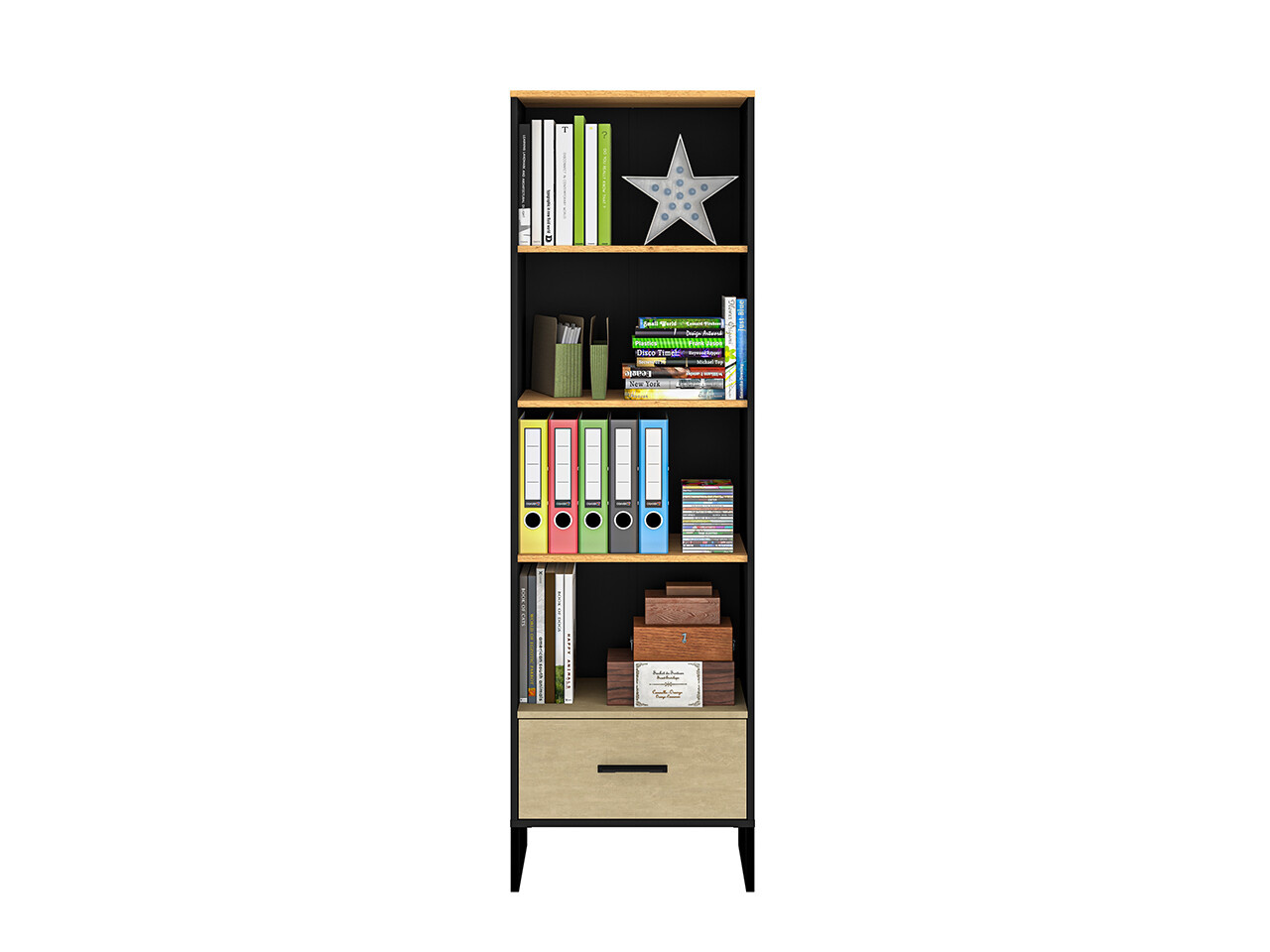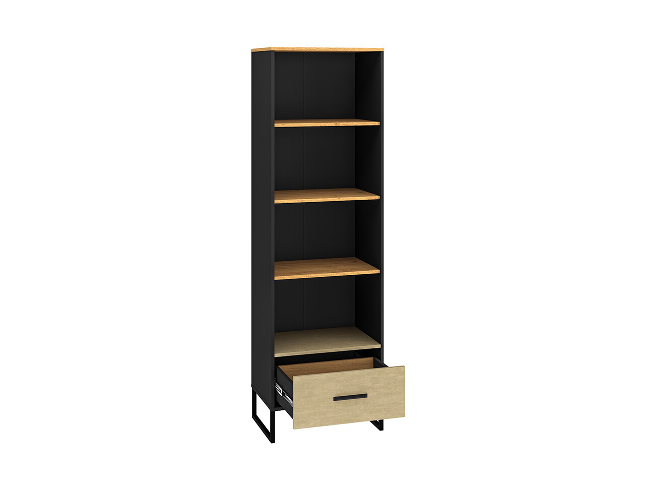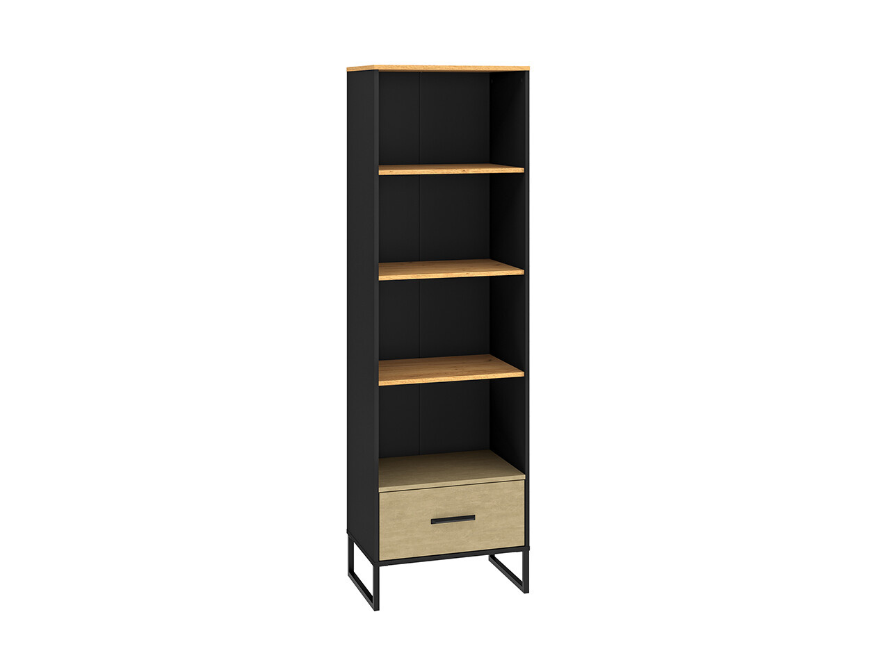 Regál Colt je vyrobena z vysoce kvalitní laminované dřevotřískové desky s ABS hranou korpus v  dezénu dub craft zlatý/černá/ prémiová ocel v matném provedení. Úchytky jsou plastové, nožky kovové, obojí v černé barvě. Dvířka mají systém "soft close" pro automatické a tiché dovírání. Zboží dodáváme v demontu.