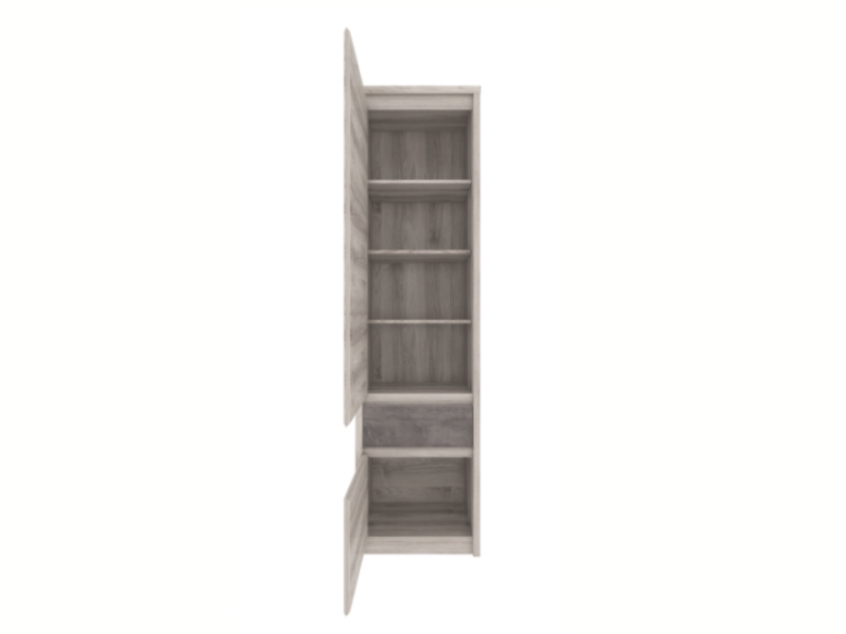 Vysoký regál Jazz 2D1s v dezénu kaštan nairobi/onyx. Moderní regál z lamina o síle 32mm (korpusy a horní deska) a 16mm (čela zásuvek) chrání ABS hrany. Regál má 5 polic, 2 dvířka a praktickou zásuvku na kvalitních kuličkových pojezdech. Nožičky jsou plastové, úchyty kovové. Univerzální systém nábytku Jazz doporučujeme do obývacího pokoje, pracovny, ložnice i studentského pokoje. Zboží dodáváme v demontu.