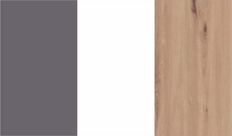 Regál ze systému Kevin má konstrukci z lamina, tl. 16 mm a hrany ABS 0,6 mm. Konstrukce v dekoru dub artisan, přední díly v dekoru dub artisan/ grafit/ bílý mat. Regál má členění 1x dvířka, 4x otevřená police,1x zásuvka. Úchytky jsou kovové v černé barvě. Zboží dodáváme v demontu.