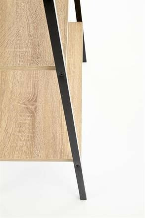 Tento minimalistický regál je vyroben v kombinaci materiálů dýhované desky v barvě dub sonoma a z černě práškované oceli. Regál má čtyři odkládací police. Regál je možno doplnit dalšími prvky z kolekce Narvik. Zboží dodáváme v demontu.