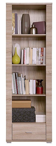 Moderní regál je vyroben z kvalitního lamina. Má tři police a zásuvku. Korpusy i dvířka celé kolekce jsou v dezénu dub sonoma. Dekorační lišty na nábytku jsou MDF. Pojezdy zásuvek kovové kuličky. Úchyty jsou z plastu v stříbrné barvě. Díky eleganci a funkčnosti jednotlivých dílů je vybavení obývacího pokoje nebo pracovny velmi snadnou záležitostí. Nábytek z kolekce GRESS je navržen tak, aby i jednotlivě vkusně doplnil výbavu pokojů. Společně pak tvoří elegantní řešení výbavy vašeho bytu. Zboží dodáváme v demontu.