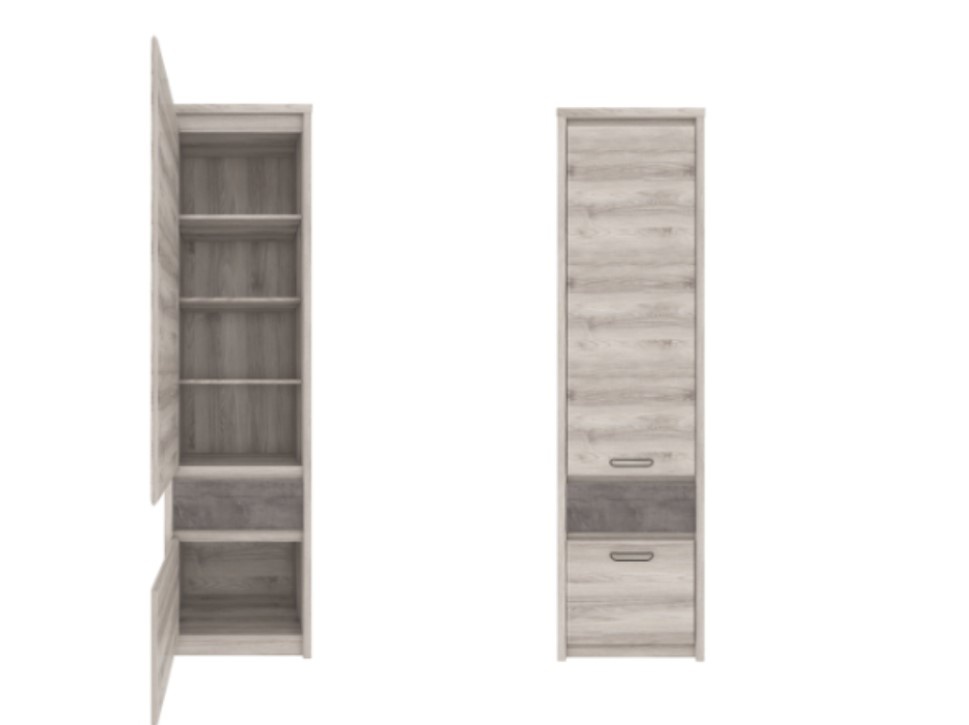 Úzký regál Jazz 1D1S nabízíme v dezénu kaštan nairobi / onyx. Otevřený regál z lamina o síle 32mm (korpusy a horní deska) a 16mm (čela zásuvky a dvířek) chrání ABS hrany. Regál má dvířka, 3 police a praktickou zásuvku na kvalitních kuličkových pojezdech. Nožičky jsou plastové, úchyty kovové. Univerzální systém nábytku Jazz doporučujeme do obývacího pokoje, pracovny, ložnice i studentského pokoje.boží dodáváme v demontu.