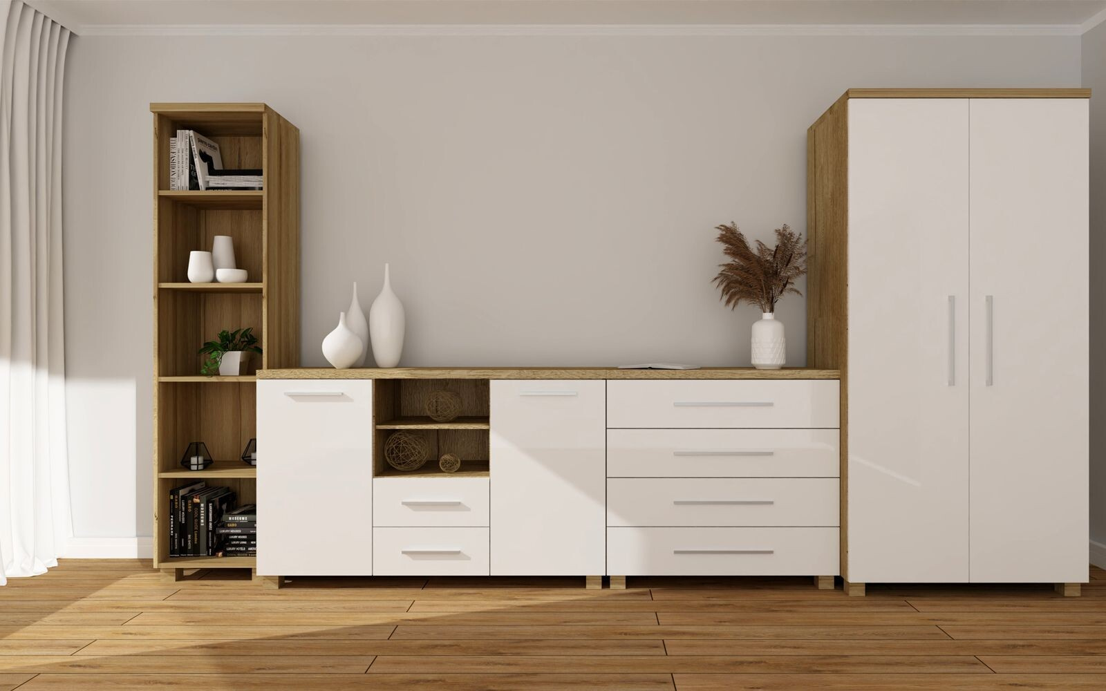 Policový regál ze systému PANAMA v barevném provedení dub soma tmavý. Regál má čtyří police. Zboží dodáváme v demontu.