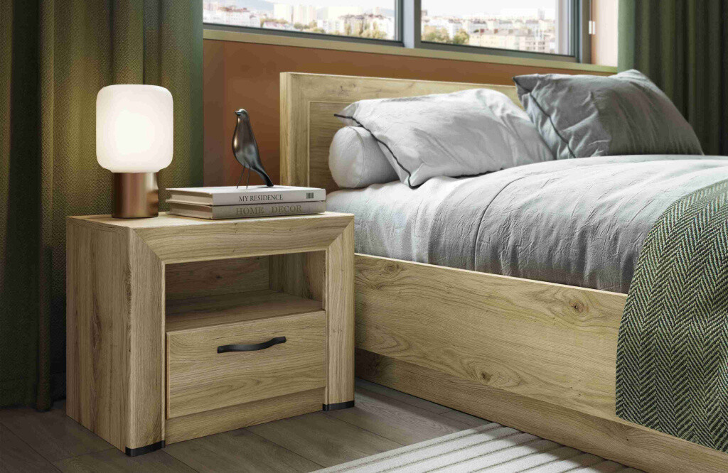 Regál Saporo v barevném provedení dub navara má korpus a horní desku vyrobenou z lamina desky (tl. 16 mm) s ABS hranami. Přední deska je vyrobená z kvalitních lamino desek (tl. 25 mm). Úchytky jsou kovové, nohy plastové a zásuvky disponují kuličkovými pojezdy s plným výsuvem. Zboží dodáváme v demontu.