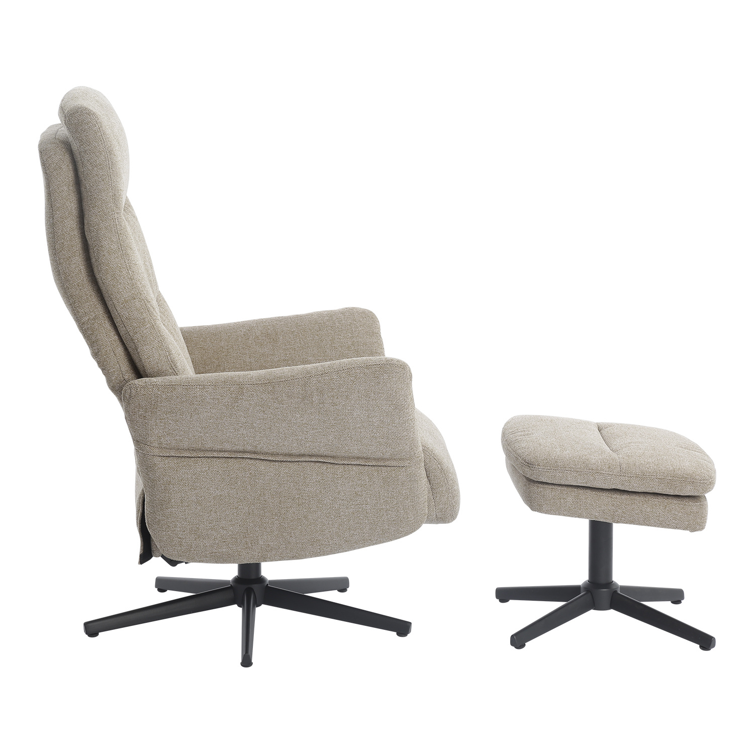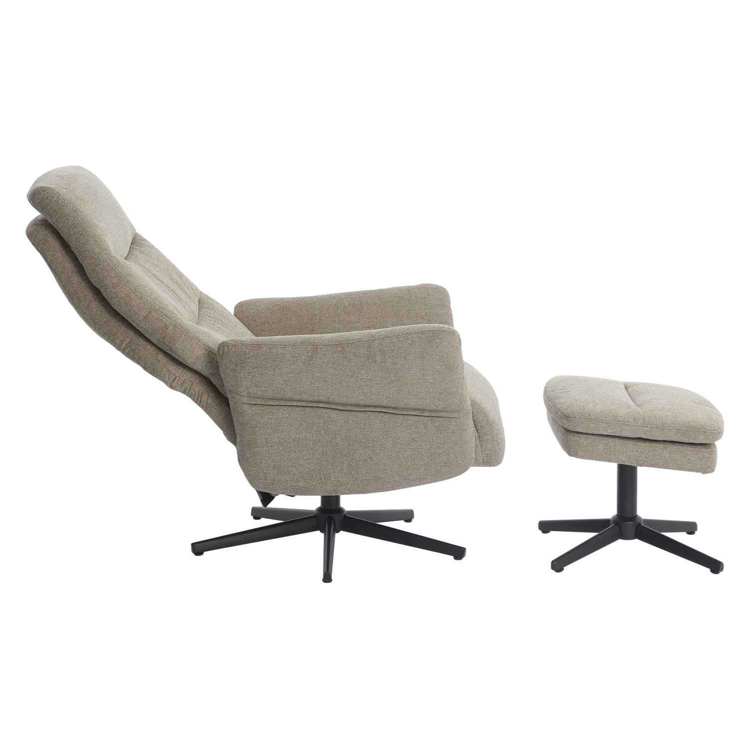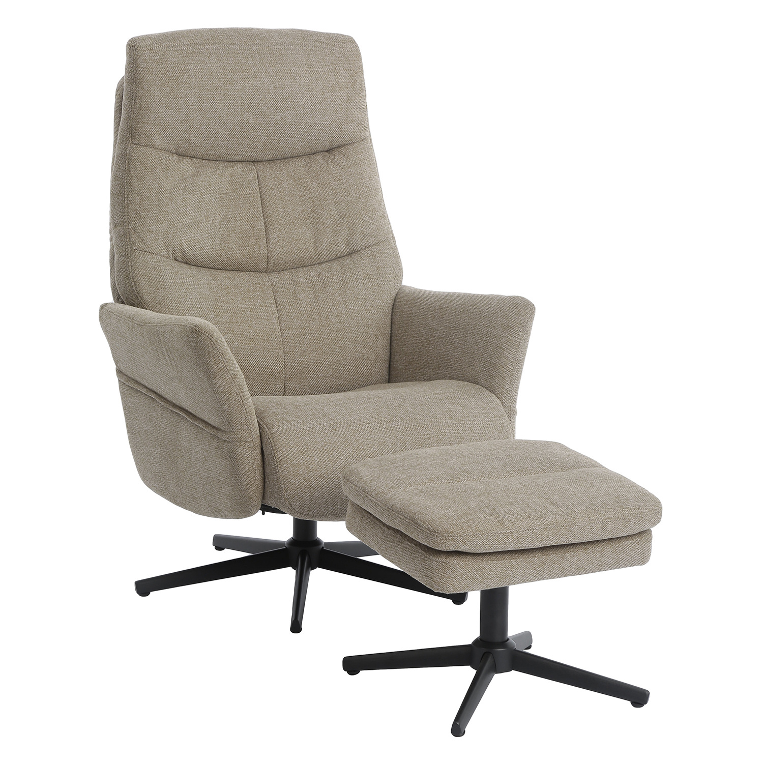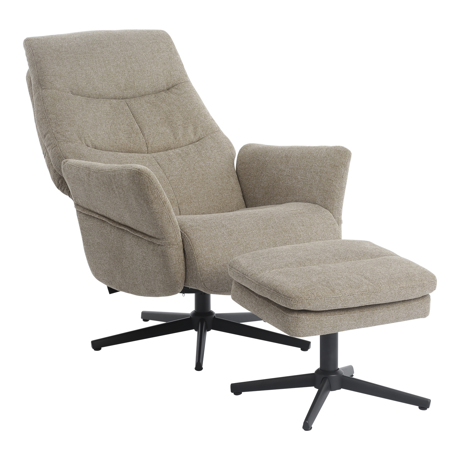 textilní potah, barevné provedení béžová otočné, polohovatelné výška sedu 45 cm, šířka sedu 50 cm, hloubka sedu 51 cm šířka opěrky 65 cm, výška opěrky 68 cm rozměr podnožky (š/h/v): 50 × 44 × 40 cm