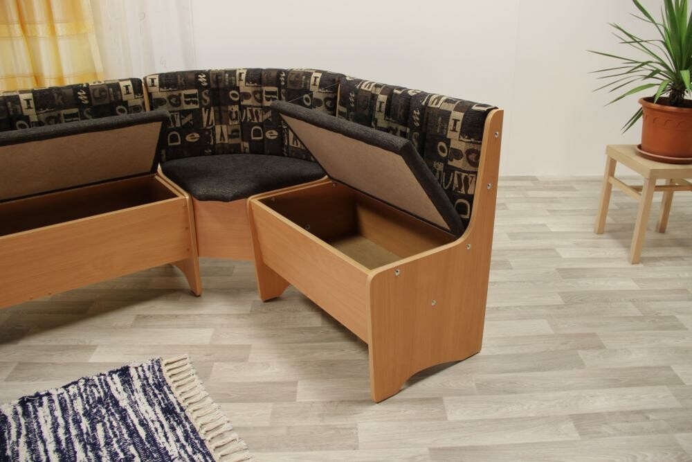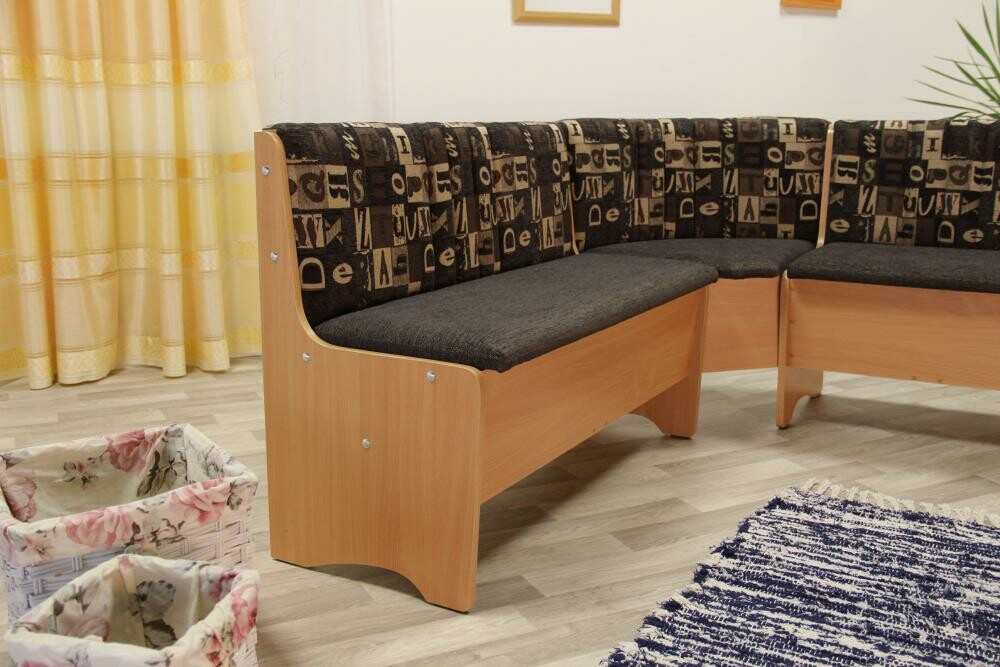 Konstrukce rohové kuchyňské lavice Blanka je tvořena kombinací masivu a velkoplošných materiálů. Čalounění je tvořeno PUR pěnou. Povrch úložných prostorů a nohy jsou vyrobeny z lamina. Rohová police je součástí.
