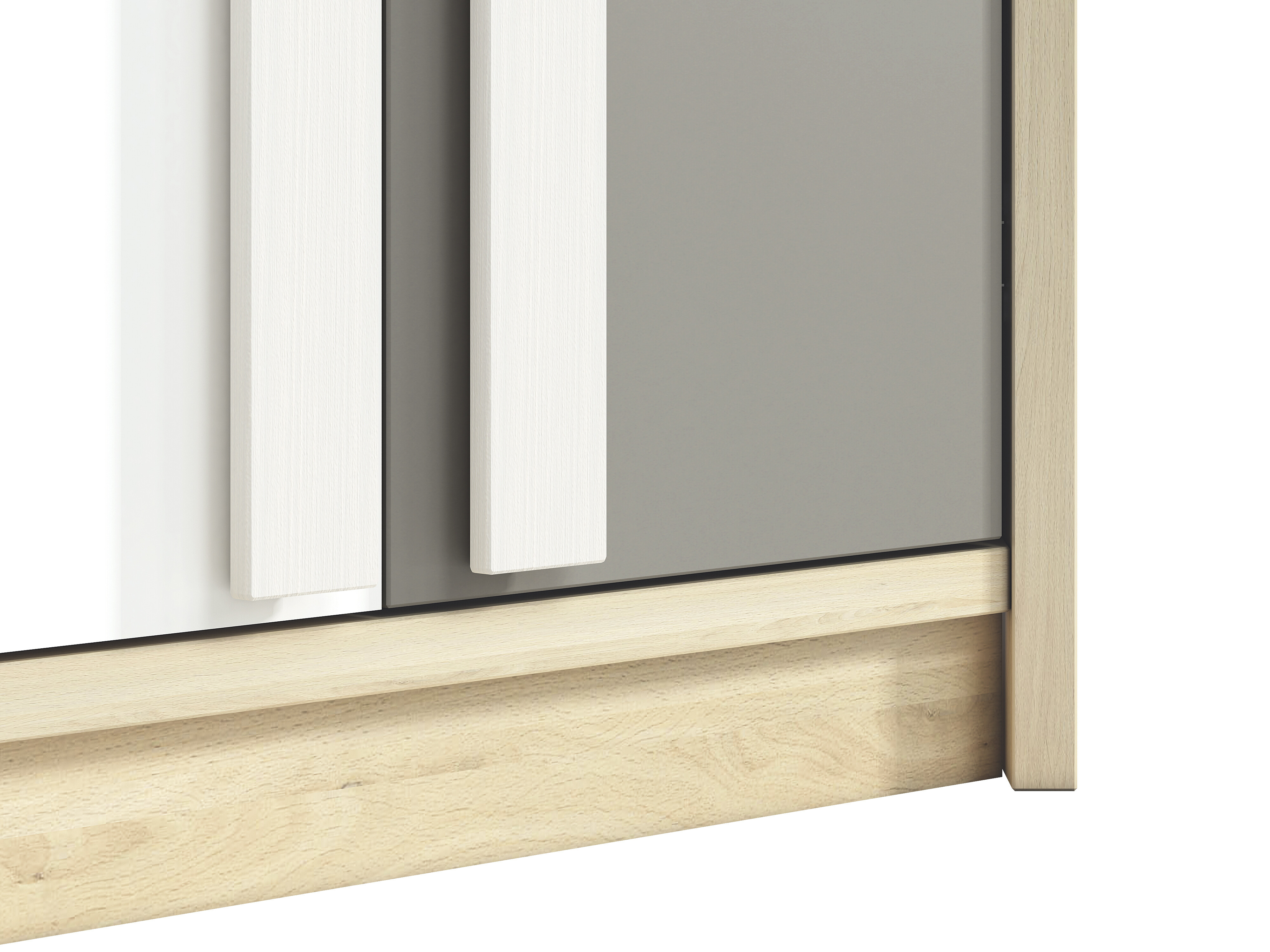 Šatní skříň Drop je vyrobena z kvalitního lamina korpus o korpusy o tl. 22mm, dvířka o tl. 16m s ABS hranami. Korpus je v provedení buk fjord a dvířka bílá/buk fjord/šedá platina. Úchyty jsou dřevěné. Zboží je dodáváno v demontu.