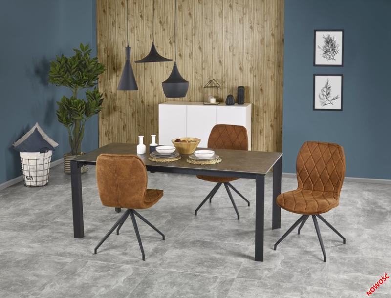 Rozkládací jídelní stůl má keramickou vrchní desku v zajímavém designu a barvě humo. Nohy stolu jsou z lakované oceli v barevném provedení černé. Jídelní židle nejsou součástí produktu. Zboží je dodáváno v demontu.