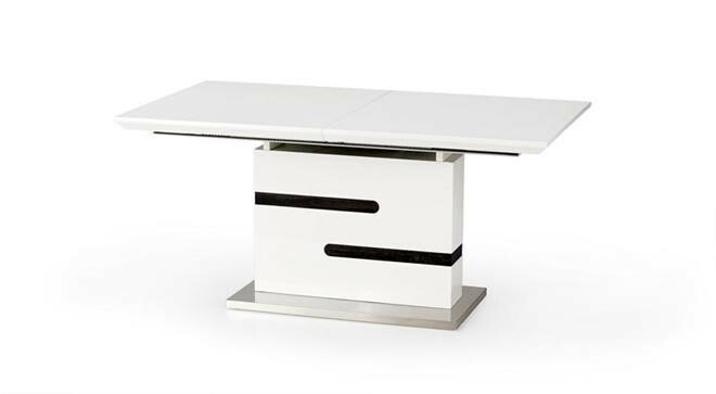 Jídelní stůl rozkládací Monaco je svým vzhledem velmi moderní, elegantní až nadčasový. Je vyroben v kombinaci MDF lakovaná v kombinaci MDF lamino v barvě bílo-šedá a nerezová ocel. Maximální nosnost 40 kg. Židle nejsou součástí jídelního stolu. Zboží je dodáváno v demontu.