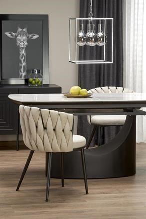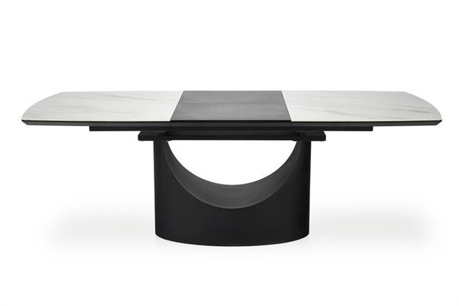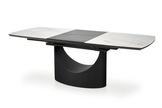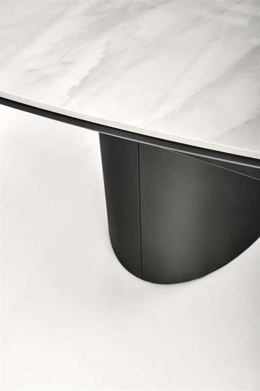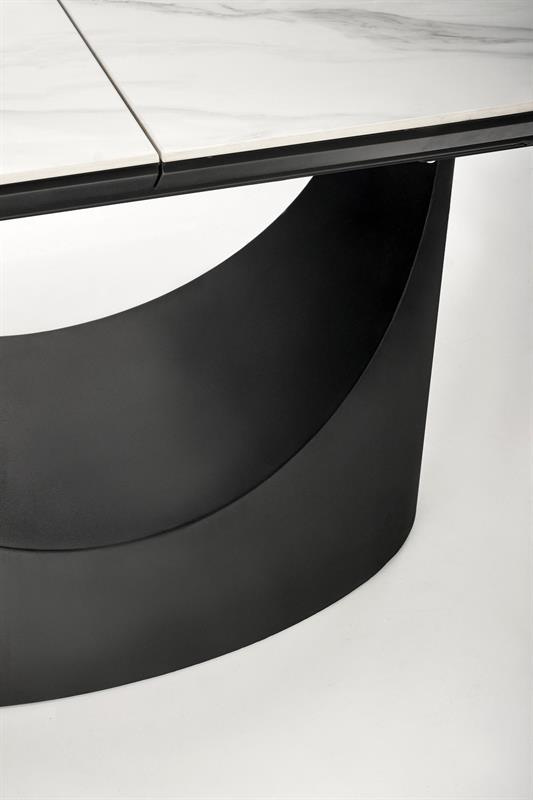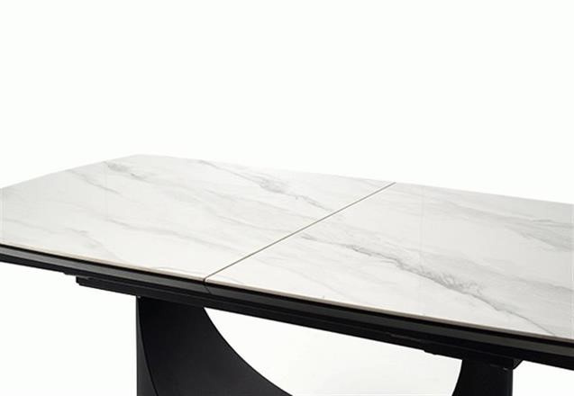 Jídelní stůl s keramickou deskou v barevném provedení bílý mramor. Noha stolu z materiálu MDF/ ocel práškovaná malovaná v černé barvě. Jídelní židle nejsou součástí. Zboží dodáváme v demontu.
