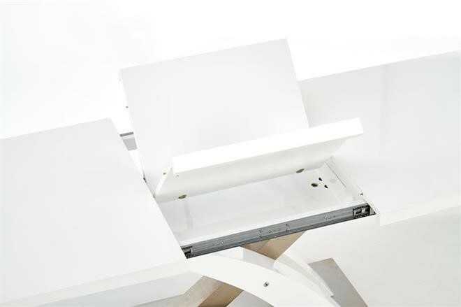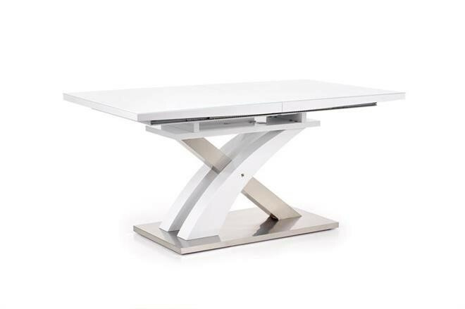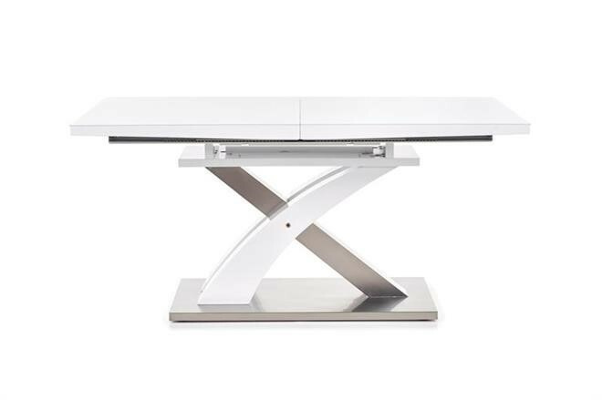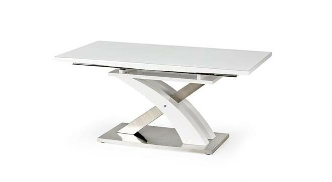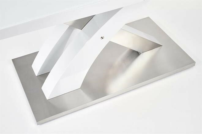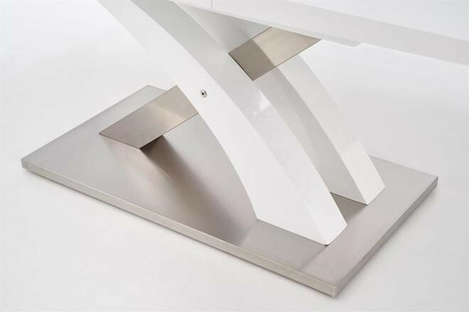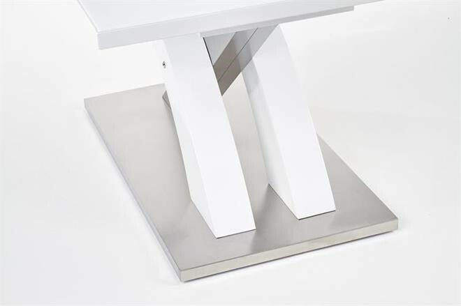 Jídelní stůl rozkládací Sandor 2 je vyroben v kombinaci tvrzeného skla - extra bílé s MDF lamino lak, nohy jsou z chromované ocele.Maximální nosnost 60 kg. Zboží je dodáváno v demontu.