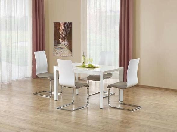 Rozkládací jídelní stůl Stanford zaujme prvotřídním zpracováním a kombinací bílé lakované MDF desky a lakované oceli. Zboží dodáváme v demontu.