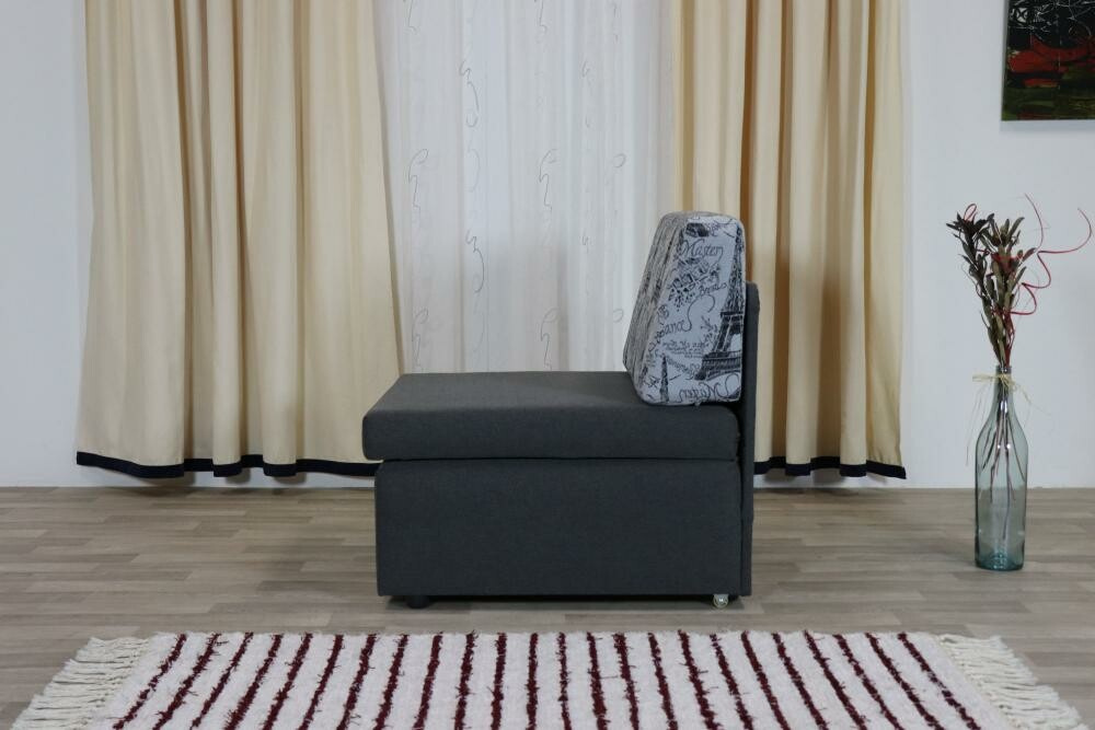 Kostra celočalouněného rozkládacího křesla je tvořena z masivu a z velkoplošných materiálů(DTD). Matrace z PUR pěny. Lehací plocha se vytvoří vytažením sedací části a překlopením sedací matrace, celková délka se doplní pomocí opěradlového polštáře. Rozkladem vznikne spací plocha 80x200 cm. Záda čalouněná v potahové látce.