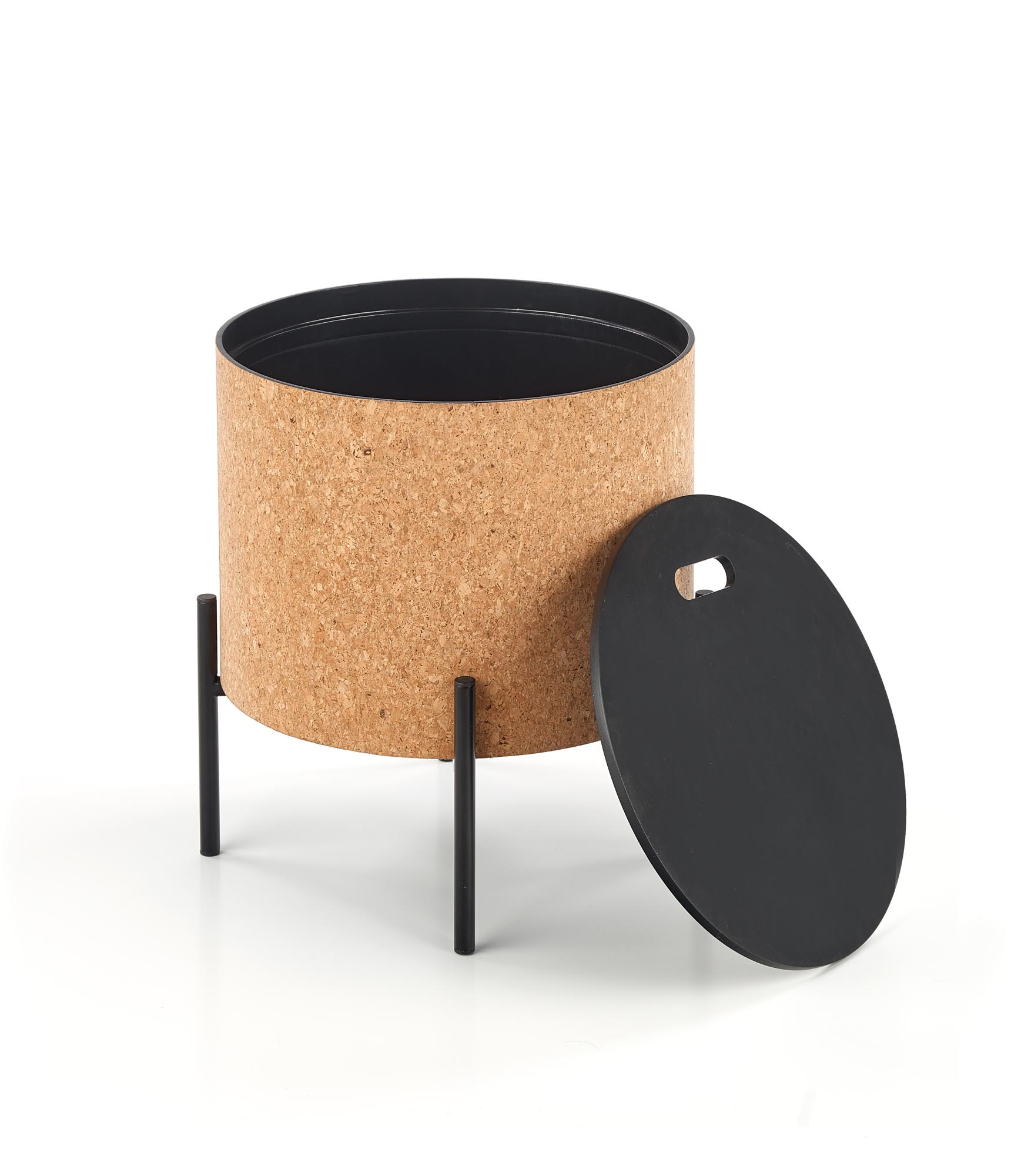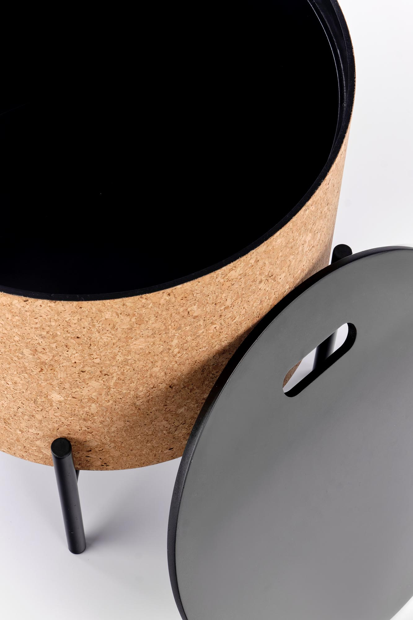 Zajímavě řešený stolek SASHA překvapí svým netradičním vzhledem a praktickým úložným prostorem. Stolek je vyrobený v kombinaci lakované ocele, MDF desky a korku v barevném provedení: přírodní / černá.