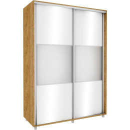 Šatní skříň z kvalitního lamina v korpusu dub soma tmavý, posuvnými dveřmi v bílém lesku se zrcadlem. Skříně jsou vyrobeny z precizně vyrobených a odolných prvků. Zboží je dodáváno v demontu.