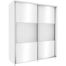 Šatní skříň z kvalitního lamina v korpusu bílá, posuvnými dveřmi v bílém lesku se zrcadlem. Skříně jsou vyrobeny z precizně vyrobených a odolných prvků. Zboží je dodáváno v demontu.
