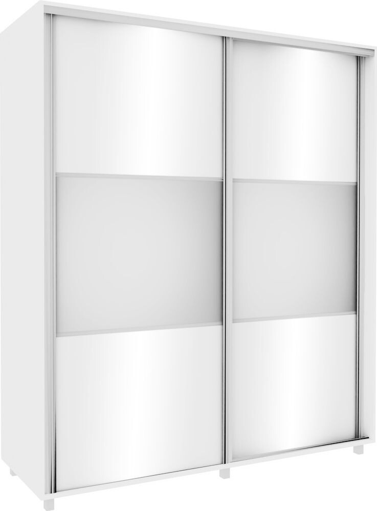 Šatní skříň z kvalitního lamina v korpusu bílá, posuvnými dveřmi v bílém lesku se zrcadlem. Skříně jsou vyrobeny z precizně vyrobených a odolných prvků. Zboží je dodáváno v demontu.