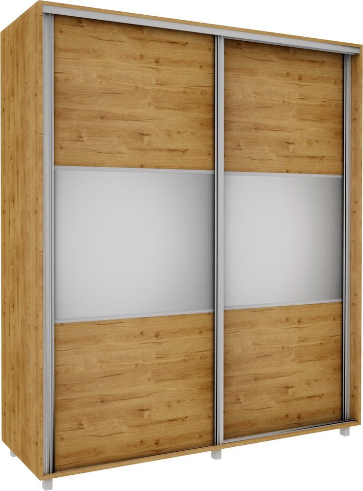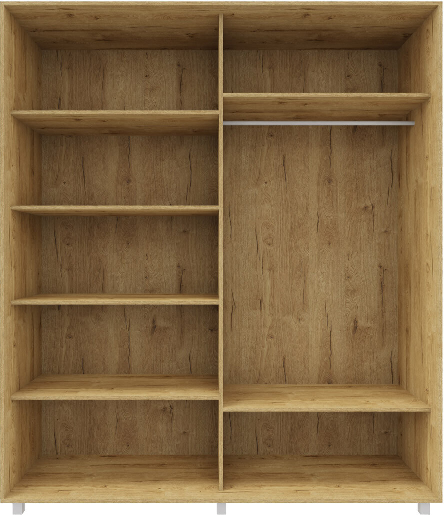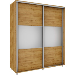 Šatní skříň z kvalitního lamina v provedení dub soma tmavý s posuvnými dveřmi se zrcadlem. Skříně jsou vyrobeny z precizně vyrobených a odolných prvků. Zboží je dodáváno v demontu.