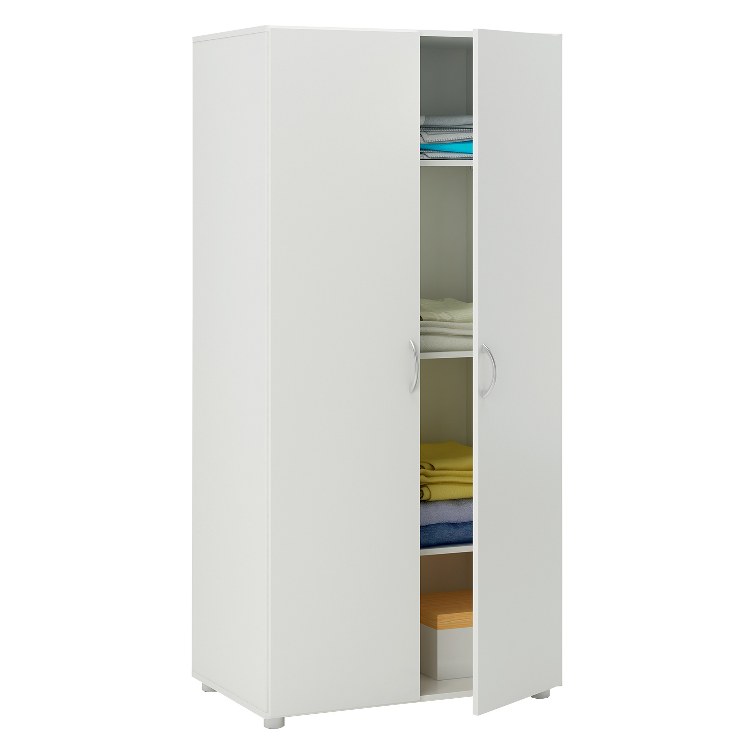 Moderní šatní skříň Best v barevném provedení bílá, je 2dveřová vybavená šatní tyčí a 3 policemi, z toho 2 variabilní. Rozměr police š.38 x h.40 cm. Zboží dodáváme v demontu.